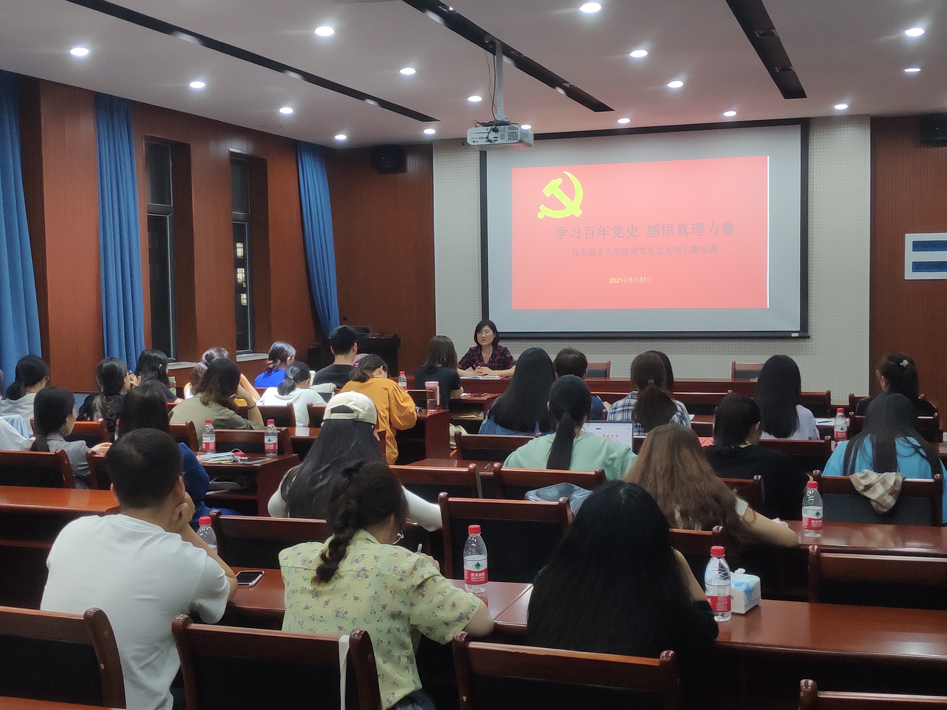 5月31日晚,德赢官网研究生党支部于410学术报告厅开展“学习百年党史 感悟真理力量”研究生党支部主题党课活动。党支部书记李明月老师授课,全体研究生党员参加。