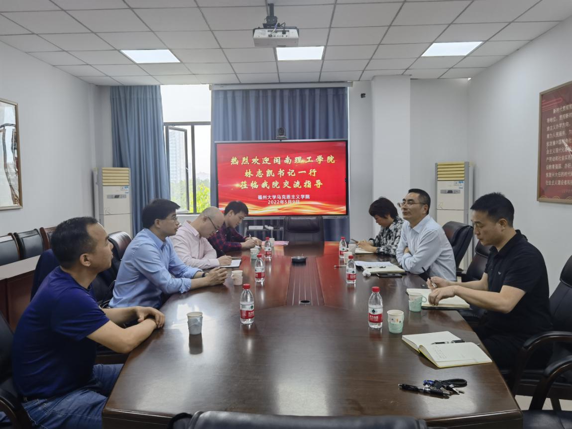 会上,黄发友书记首先对闽南理工学院同仁的到来表示热烈的欢迎,并简要介绍了德赢官网整体办学情况、党建工作、师资队伍建设、人才引进等方面情况。詹志华院长就德赢官网思政课教学与科研工作、学科建设等情况进行了介绍,并重点对“专题式—问题化”特色教学、模块化实践教学等做法与经验进行了详细说明。随后,双方单位就教学研究、学科建设、人才引进、师资队伍建设、人才培养、学生工作等方面展开了深入的交流探讨,希望就共性问题加强研讨,以促共同进步。