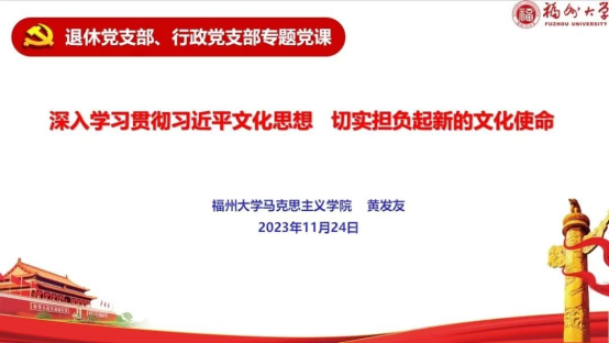 为深入学习领会、坚决贯彻落实习近平文化思想,不断增强党组织的凝聚力和战斗力,11月24日,德赢官网党委书记黄发友教授为退休干部党支部和行政党支部上题为《深入学习贯彻习近平文化思想 切实担负起新的文化使命》的专题党课。
