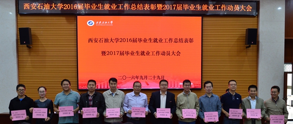 副校长陈军斌宣读了关于2016届毕业生就业工作先进集体和先进个人、本科生考研工作优秀单位和2016届“我的求职故事”征文比赛优秀组织奖的表彰决定,与会领导为获奖集体和个人颁奖。
