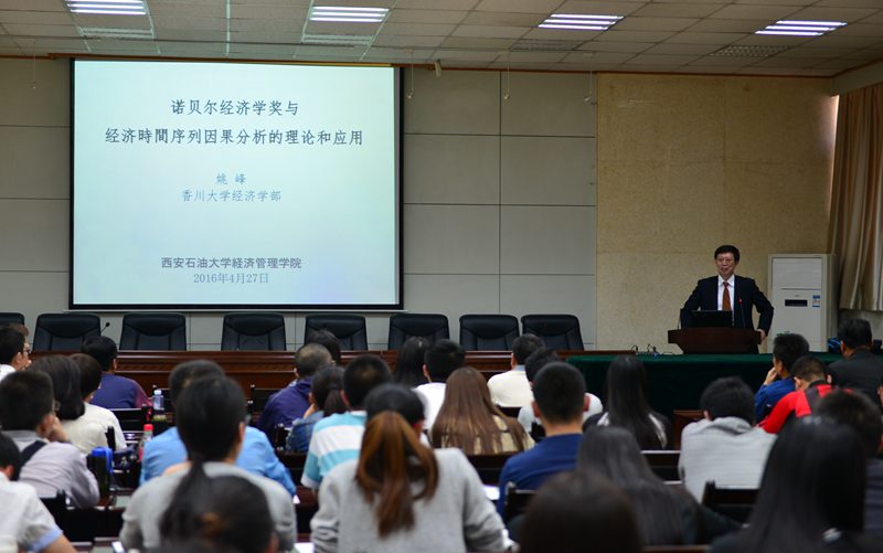 随后,姚峰教授在第三会议室为william师生作了题为《诺贝尔经济学奖与经济时间序列因果分析的理论和应用》的学术报告。