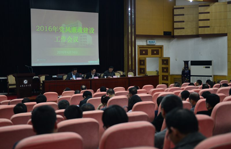 4月14日下午,学校2016年党风廉政建设工作会在学术报告厅召开。校党政领导赛云秀、屈展、李延平、陈军斌、李华出席。校纪委委员、正教授、全体处科级干部、特邀监察员参加了会议。屈展校长主持会议。