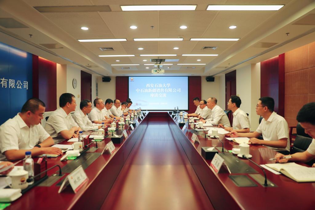 在中国石油新疆销售有限公司走访交流期间,公司党委副书记、总经理黄剑宇等企业领导会见常江、王进富一行,并进行工作座谈。黄剑宇感谢学校在长期的合作过程中,为公司提供了重要的人才、科技支撑。他表示,下一步将围绕科研攻关、创新人才培养、推进智慧销售构建大营销体系、提升学历教育培训等方面,进一步增加合作力度、拓展合作广度、加大合作深度,共同实现高质量发展。