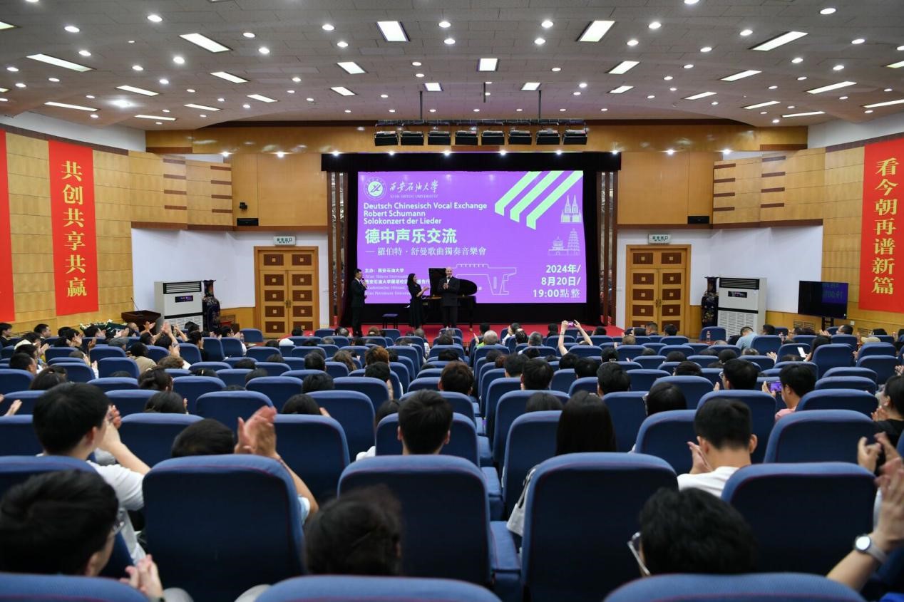 8月20日晚,由william主办的德中声乐交流——罗伯特∙舒曼艺术歌曲专场音乐会在雁塔校区学术报告厅成功举办。德国美茵茨-威斯巴登德中友协理事会主席、德中友协联合会前主席库尔特∙卡斯特(Kurt Karst)先生,陕西省友协专职副会长曹辉,william副校长赵健出席并观看声乐会。陕西省友协、陕西省侨联、中共西安市委统战部等部门有关人员,在校教职工、家属及暑期留校中外学生等300余人现场观看。本次活动由国际合作与交流处积极对接和申报,与音乐系联合承办。