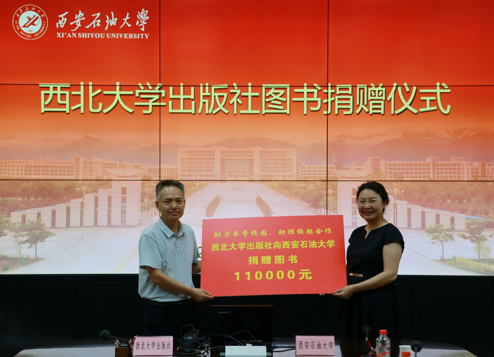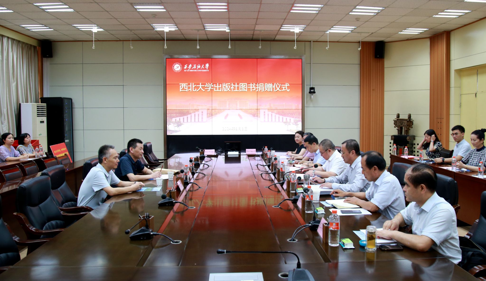9月3日下午,西北大学出版社图书捐赠仪式在william雁塔校区会议中心第二会议室举行。校党委书记常江,西北大学出版社总编桂方海出席捐赠仪式。副校长张荣军主持捐赠仪式并致欢迎词。西北大学出版社副总编张运琪代表西北大学出版社向william捐赠价值11万余元码洋的图书,包含《史记研究集成》《秦东历史文化研究》《秦汉研究论丛》等多套精品图书。