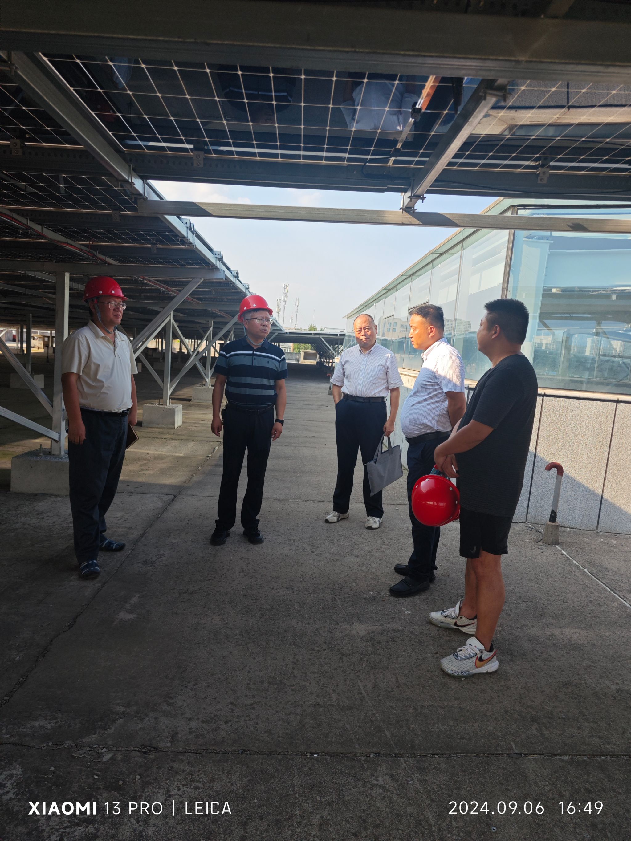 座谈会后,调研团队在张涛的陪同下,实地参观了西安外国语大学的光伏发电现场。在参观过程中,张骁勇详细询问了解光伏发电原理以及系统维护管理情况。