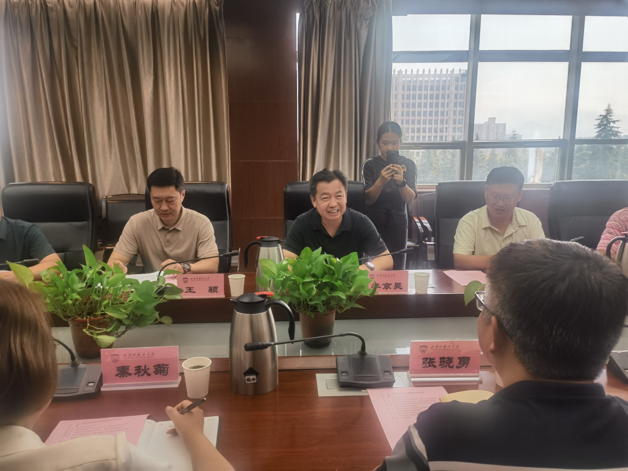 座谈会在西安外国语大学政务楼举行,西安外国语大学党委委员、副校长李京昊参加了会议,会议由西安外国语大学后勤处处长张涛主持。