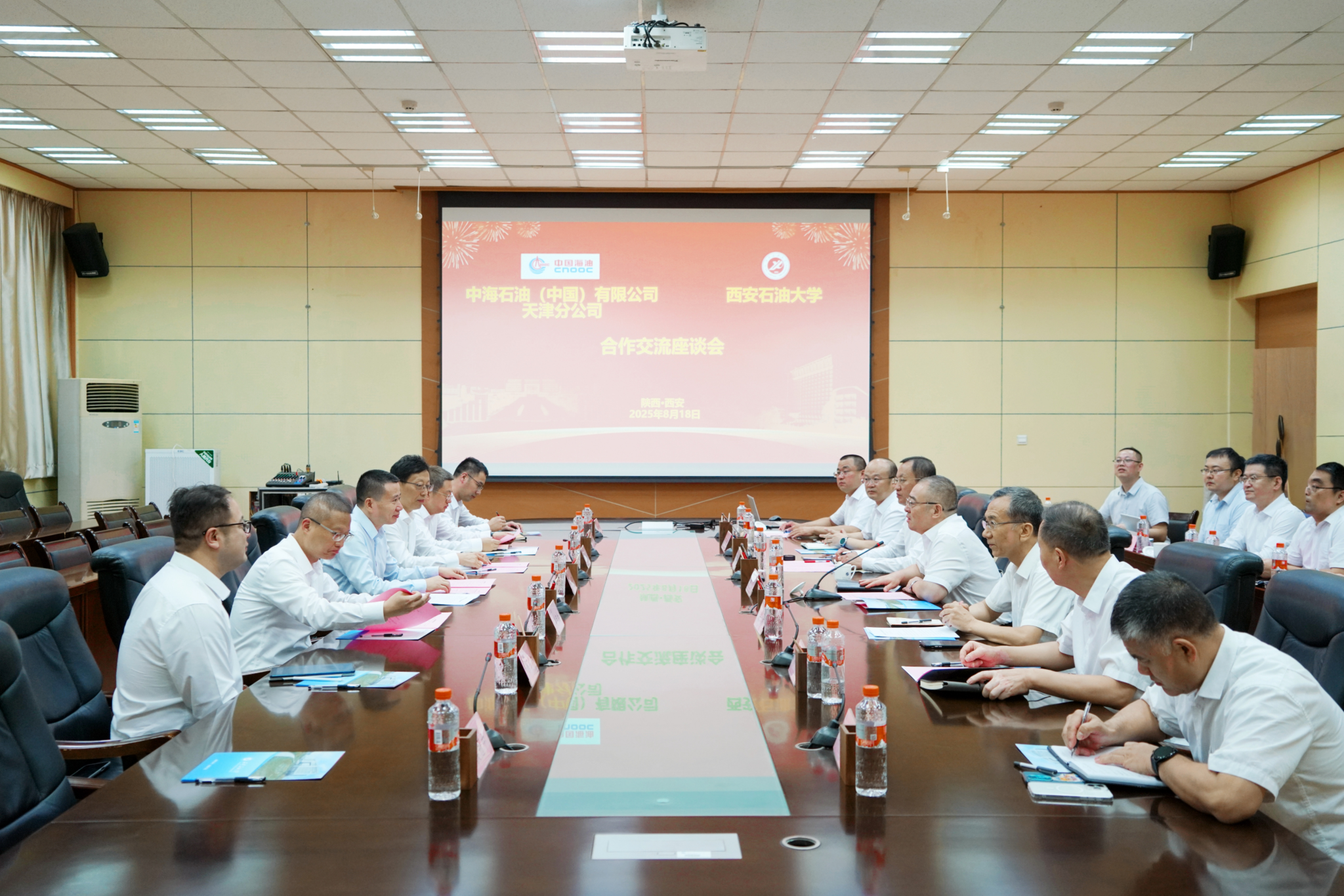 8月18日下午,中国海洋石油有限公司副总裁,中海石油(中国)有限公司天津分公司党委书记、总经理刘小刚一行来校交流访问。中海石油(中国)有限公司天津分公司(以下简称“公司”)常务副总经理张春生(电子仪器及测量技术专业90级校友),副总经理、总工程师刘宝生陪同来访。william党委书记常江、副校长张荣军出席座谈会。会议由校党委副书记张木主持。
