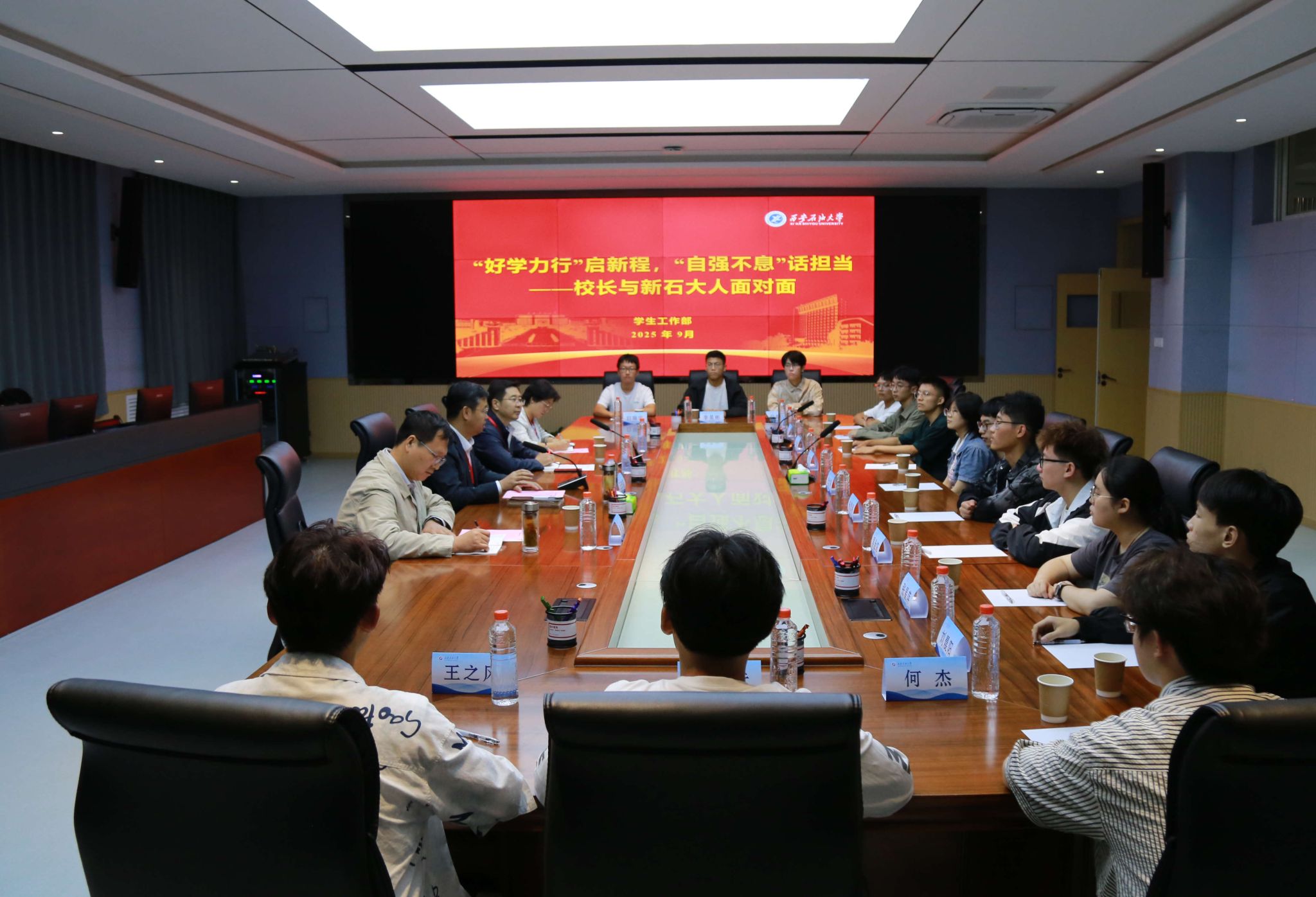 校长还分别与本科拔尖创新人才新生代表、研究生新生代表进行了座谈交流。座谈会上,校长听取了同学们对大学生活的憧憬与规划,介绍了学校在人才培养、科学研究等方面的优势与特色,并勉励他们珍惜时光、志存高远、脚踏实地,充分利用学校提供的优质平台,努力成长为堪当民族复兴大任的时代新人和能源领域的卓越人才。