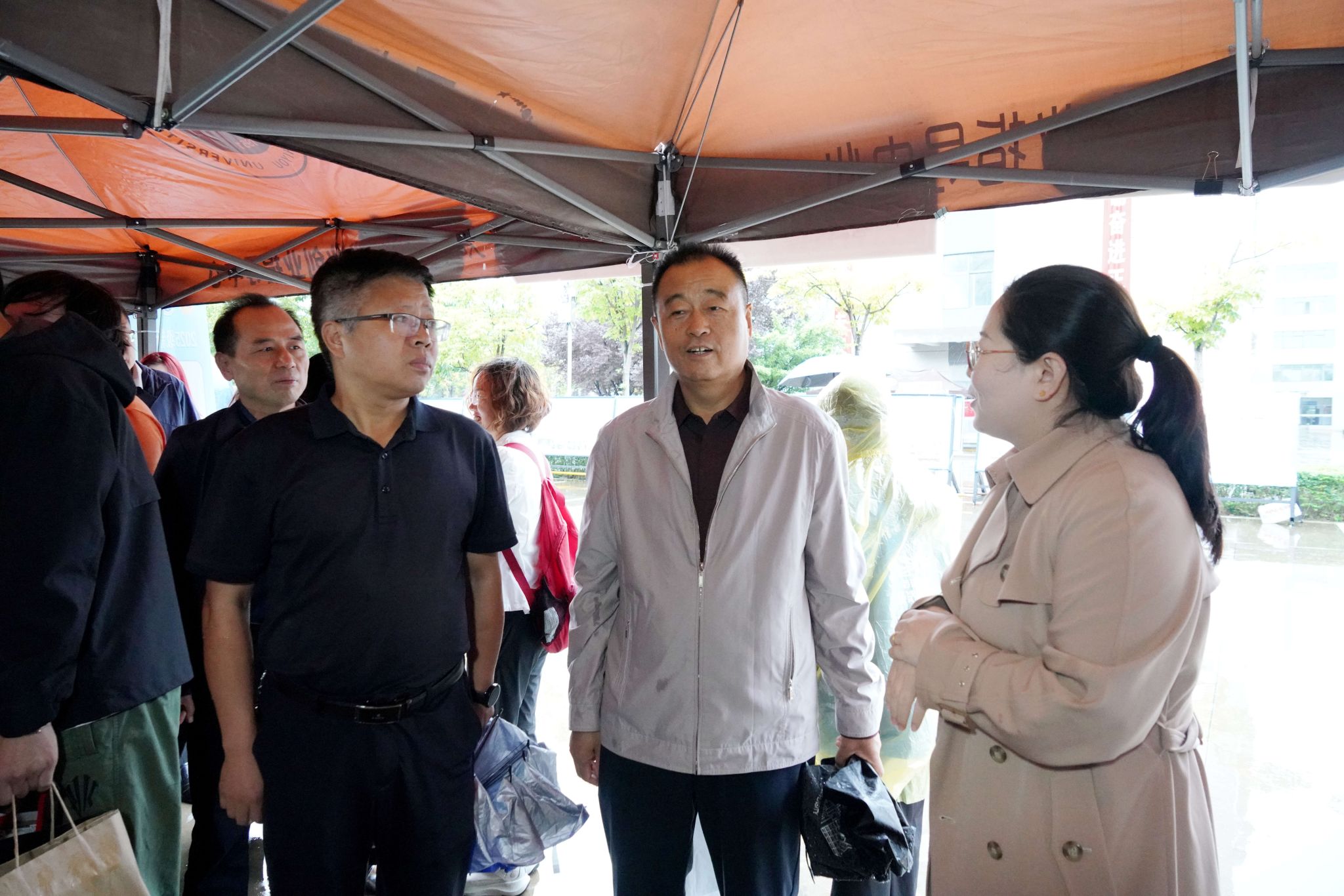 新生报到期间,王进富校长一行深入迎新现场,到各院(系)报到点、职能处室办公点、绿色通道办理处、志愿者服务点、宿舍楼、食堂等地,检查指导迎新工作。校领导与新生及家长亲切交流,详细了解他们的报到感受和需求。