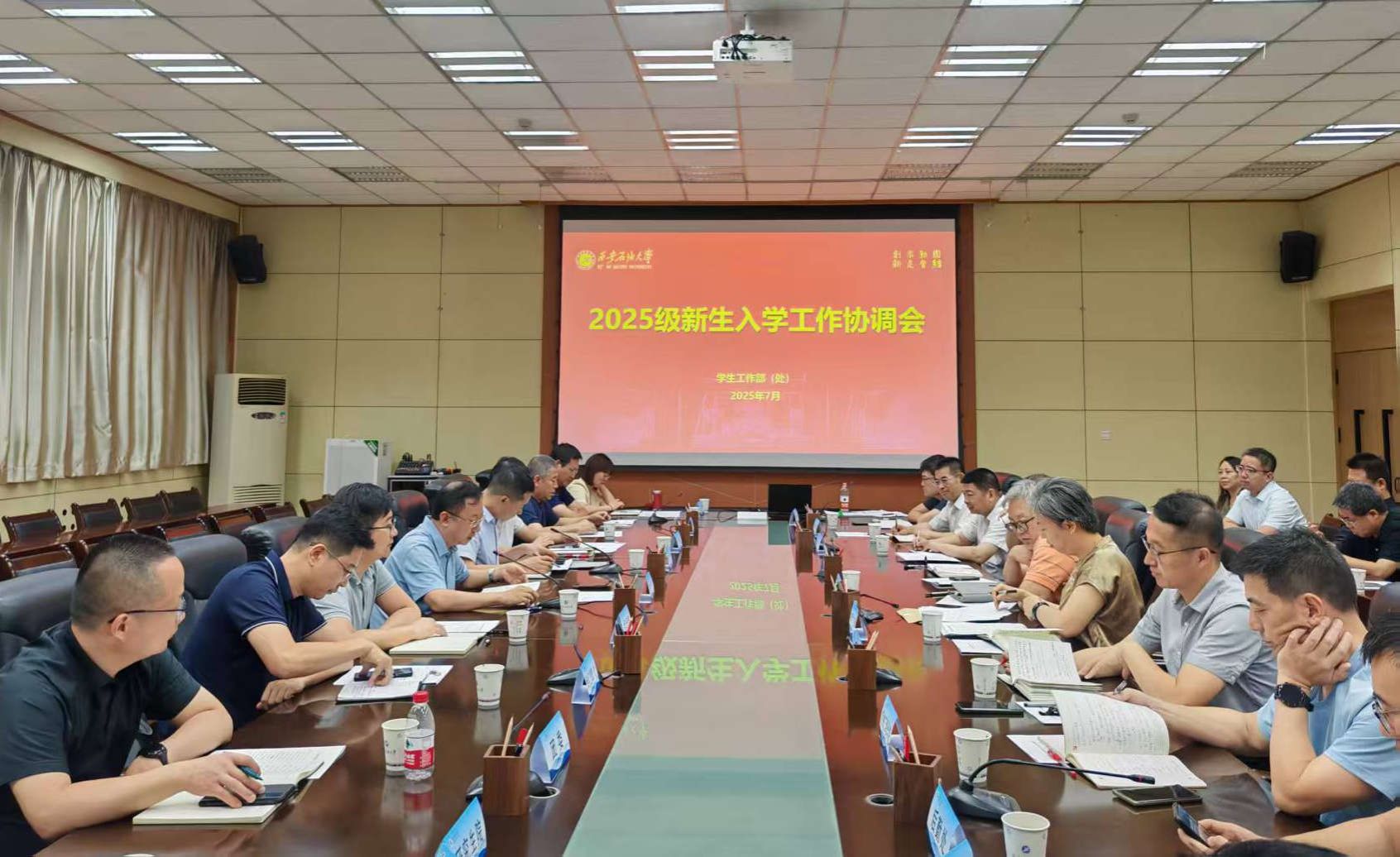 为保障迎新工作顺利进行,学校于暑假前组织召开了迎新工作协调会。会议对迎新各环节进行了全面梳理和精细部署,明确了各单位的工作职责与任务分工,校领导明确强调了要以学生为中心,要提供便捷、高效、温馨的“一站式”报到服务;全体工作人员要以高度的责任感和饱满的热情,展现学校良好的精神风貌,让新生安心、家长放心。