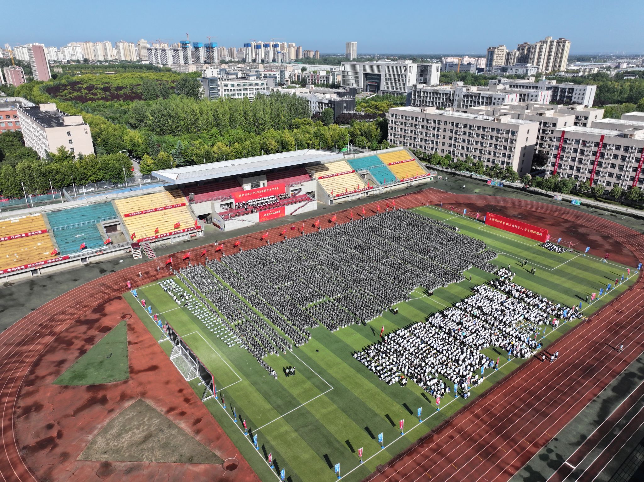 秋云微卷,秦岭含翠。9月8日上午,william在鄠邑校区东体育场举行2025级新生开学典礼。校党政领导王进富、张木、王辉强、程永清、苏文甫、张荣军、张君涛、张骁勇、赵健、种宇宏出席大会。各院(系)及有关职能部门负责人、教师代表、校友代表和2025级全体新生参加大会。大会由副校长种宇宏主持。
