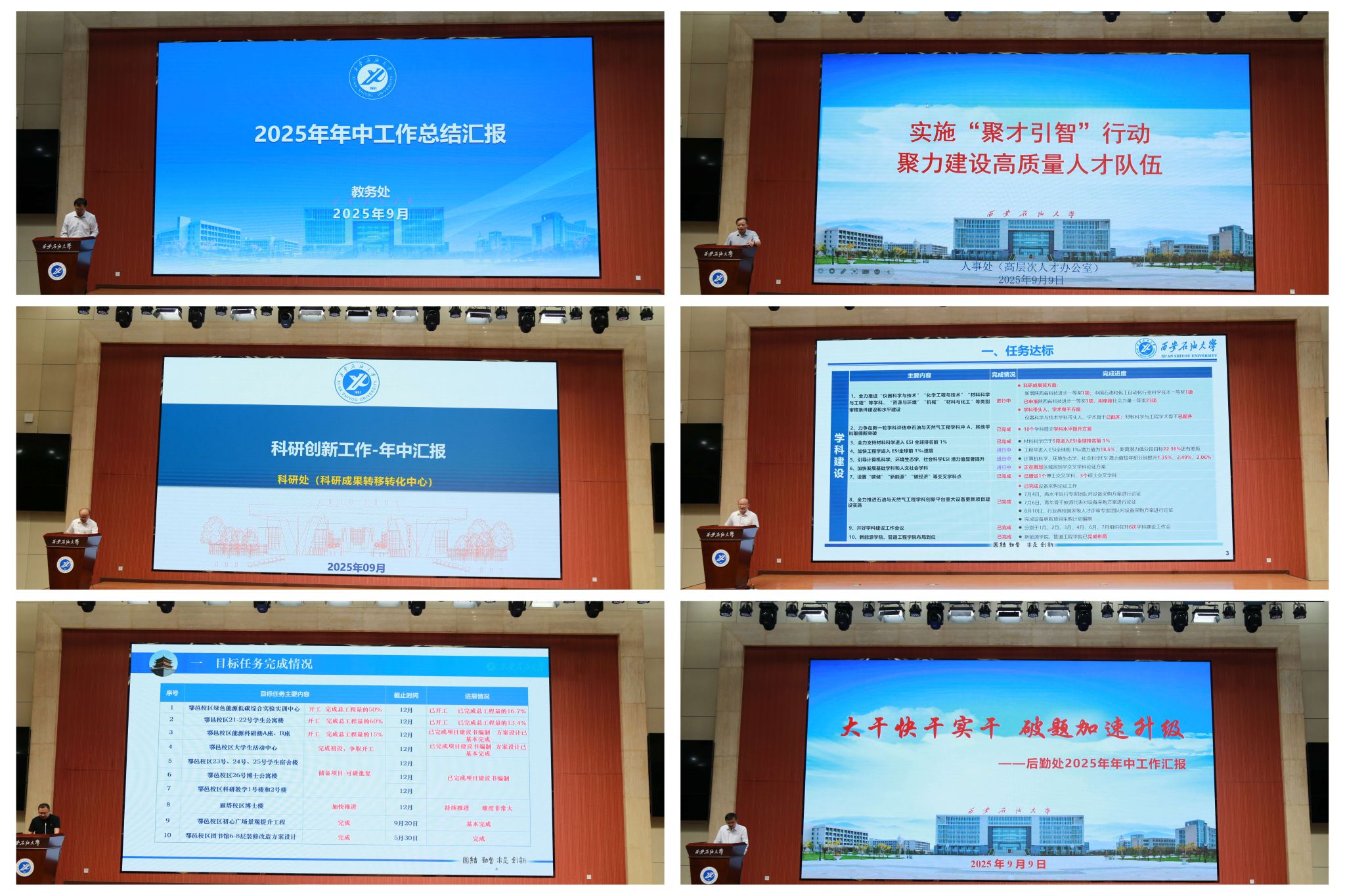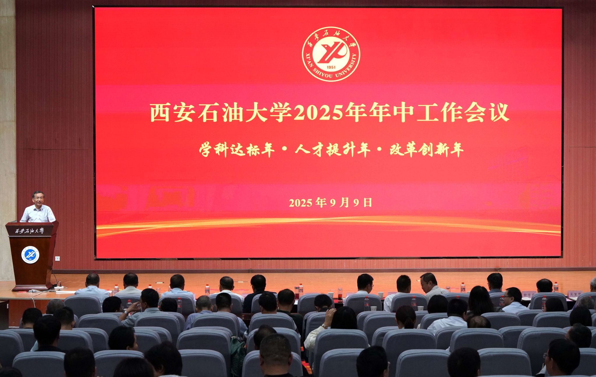 9月9日,学校在鄠邑校区弘石学术报告厅召开2025年年中工作会议,全面总结上半年学校各项事业发展成效,深入分析当前面临的挑战,系统部署当前重点工作。学校党政领导王进富、张木、程永清、苏文甫、张荣军、张君涛、张骁勇、赵健、种宇宏出席会议。校党委委员、纪委委员、学术委员会委员、工会委员会委员,二、三级教授,各院(系)教研室(系)主任、实验中心主任,全体处科级干部参加会议。会议由校党委副书记张木主持。
