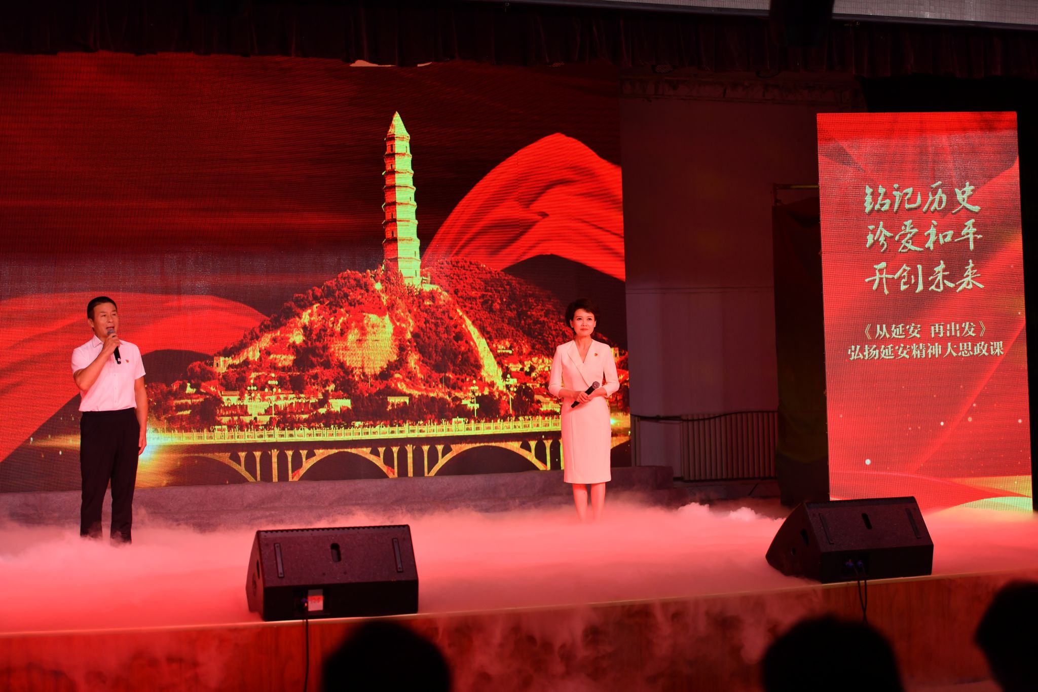 为深入贯彻落实习近平总书记关于弘扬延安精神的重要指示精神,推动延安精神进校园、进课堂、进头脑,9月10日晚,由省委教育工委、省教育厅、省延安精神研究会、陕西广电融媒体集团(台)、william威廉中文官网联合主办的“从延安 再出发”弘扬延安精神开学第一堂“大思政课”首场在william鄠邑校区腾辉活动中心举行。陕西省延安精神研究会会长、陕西省人大常委会原副主任梁宏贤,陕西广电融媒体集团(台)党委委员、副总编辑郭雄,西安市延安精神研究会会长李德文,鄠邑区委常委、区委宣传部部长王值,william校长王进富、校党委副书记程永清、副校长张君涛以及师生代表出席宣讲活动。“大思政课”还通过william威廉中文官网官微、抖音账号等对外网络直播,1.3万余人次观看了活动直播,点赞2.6万余人次。