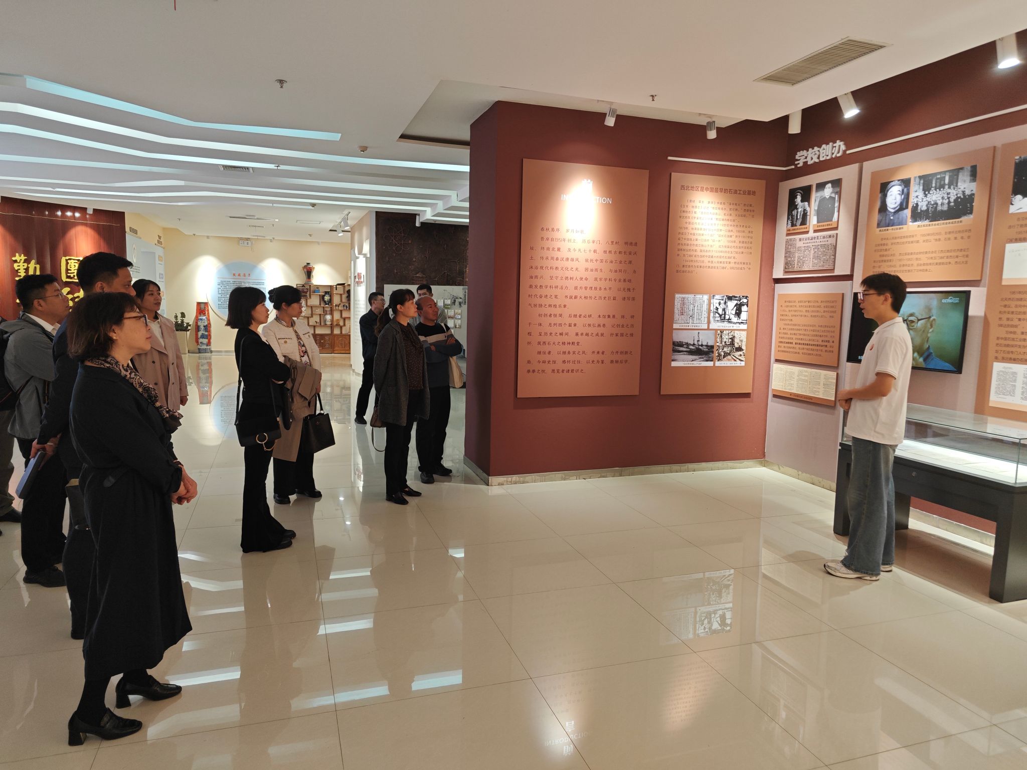 会谈前,戴莲、蔡望、刘洋一行参观了学校铁人王进喜纪念馆、校史馆及鄠邑校区校医院。此次座谈交流为学校拓宽了医疗建设、健康管理、学科建设及人才培养方面,为深化校企协作、建设幸福西石大奠定了坚实基础。
