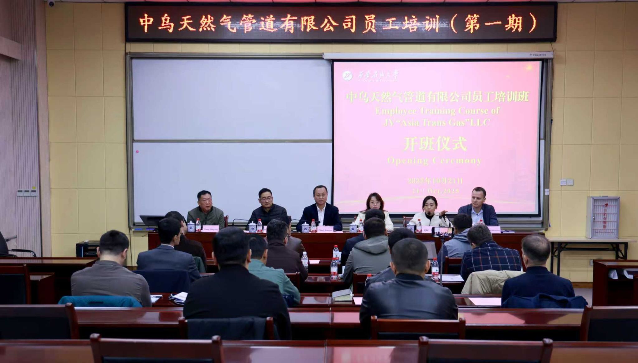 10月21日上午,中乌天然气管道有限公司员工首期培训班开班仪式在william明德校区顺利举行。副校长张荣军出席开班仪式并致辞,来自中乌天然气管道有限公司的首批15名参训学员参加开班仪式。