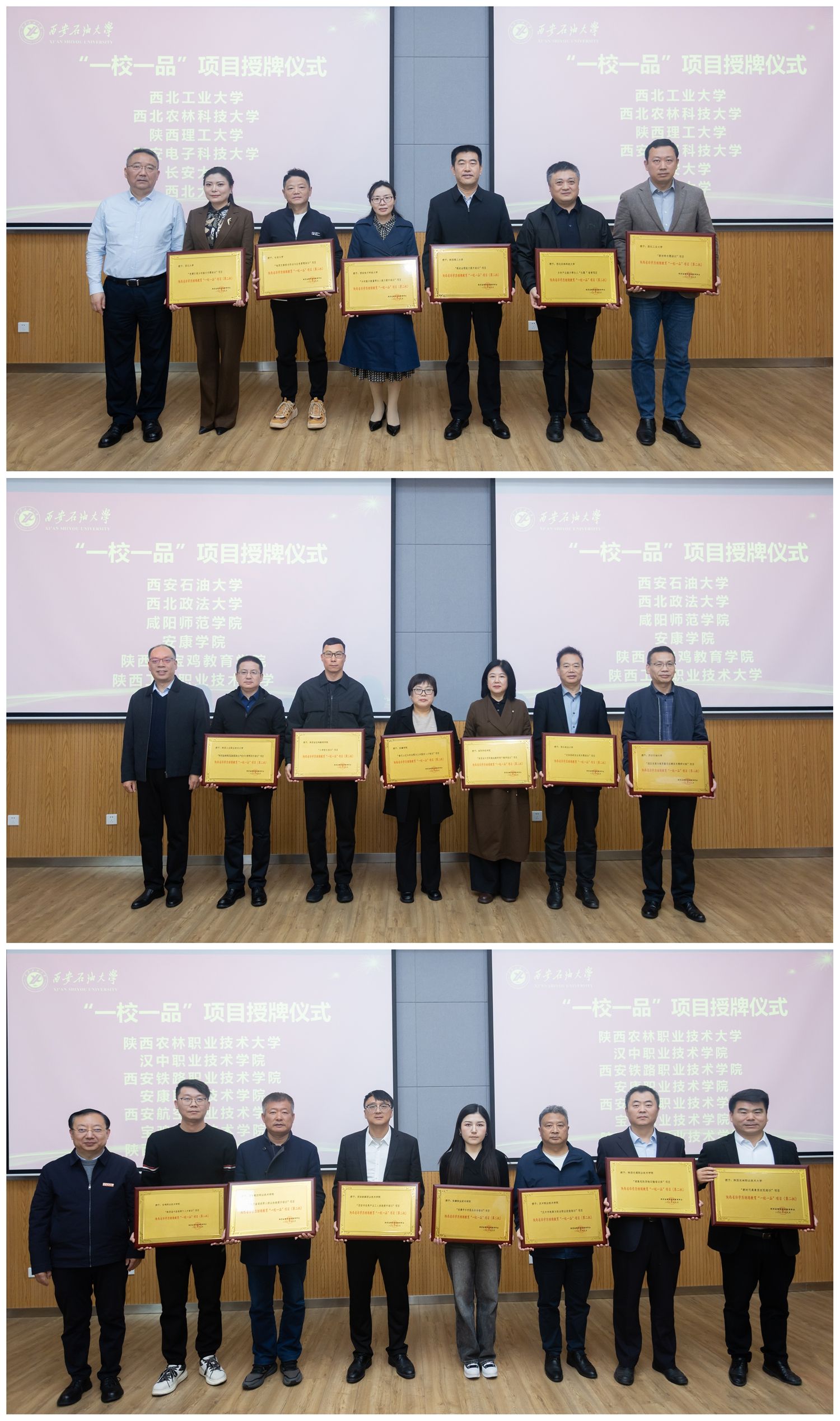 在非学历继续教育“一校一品”项目授牌仪式上,叶培哲宣读了陕西省高等继续教育学会《关于公布陕西省非学历继续教育“一校一品”项目(第二批)评选结果的通知》,包括william非学历继续教育项目“园区发展与高质量项目建设专题研讨班”在内的19所高校的非学历教育特色项目入选,龙治刚、叶培哲和种宇宏分别为19所高校代表颁发牌匾。