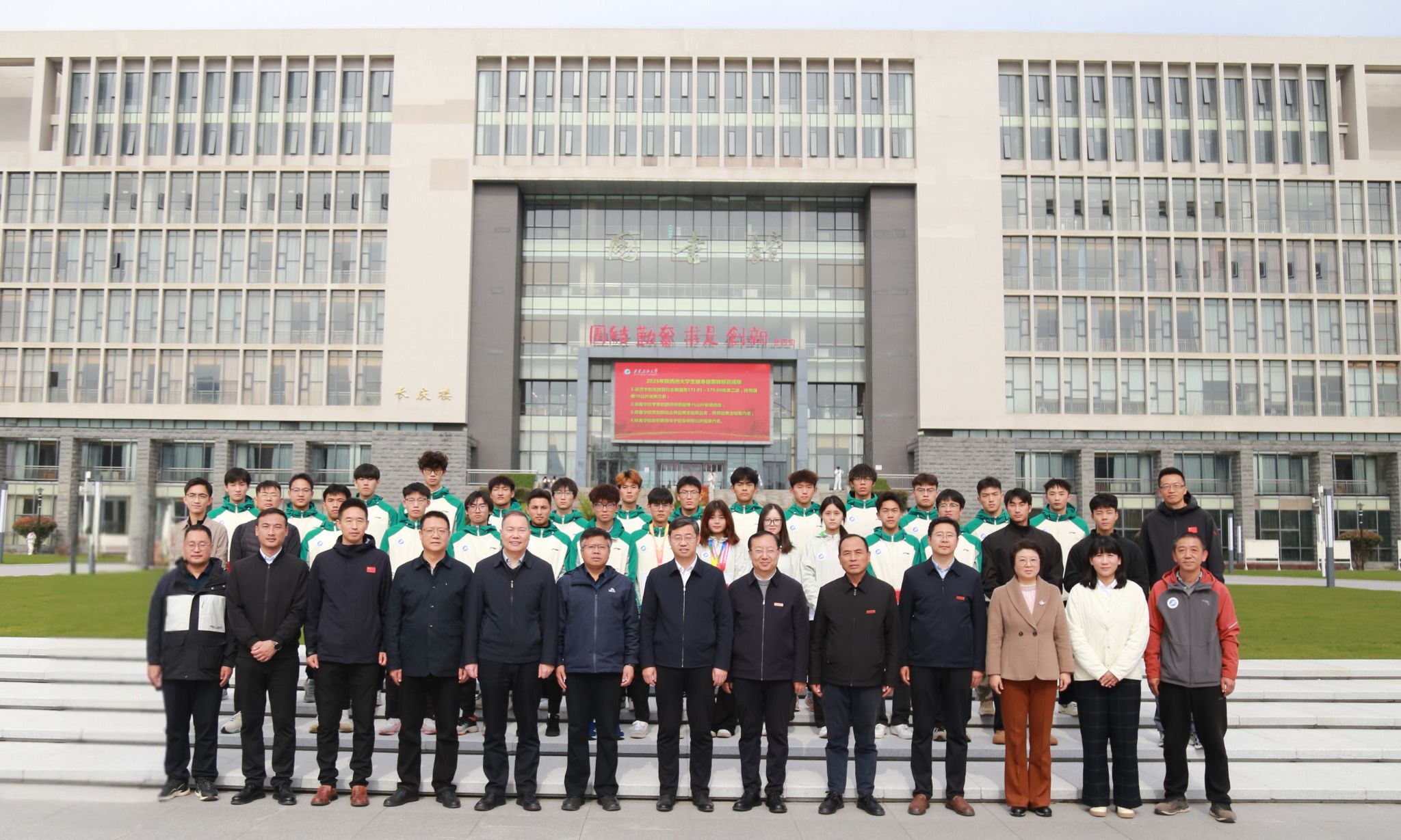 2025年陕西省大学生田径运动会、陕西省大学生健美健身锦标赛近日落下帷幕,william田径队、健美队在比赛中斩获佳绩。10月31日,学校在鄠邑校区初心广场为载誉归来的校田径队、健美队师生举行了慰问及表彰仪式。校长王进富,副校长张骁勇、种宇宏出席仪式。党委办公室(校长办公室)、党委宣传部、党委学生工作部、团委、教务处、校友工作与合作交流处、体育学院负责人参加仪式。仪式由体育学院院长李寿邦主持。