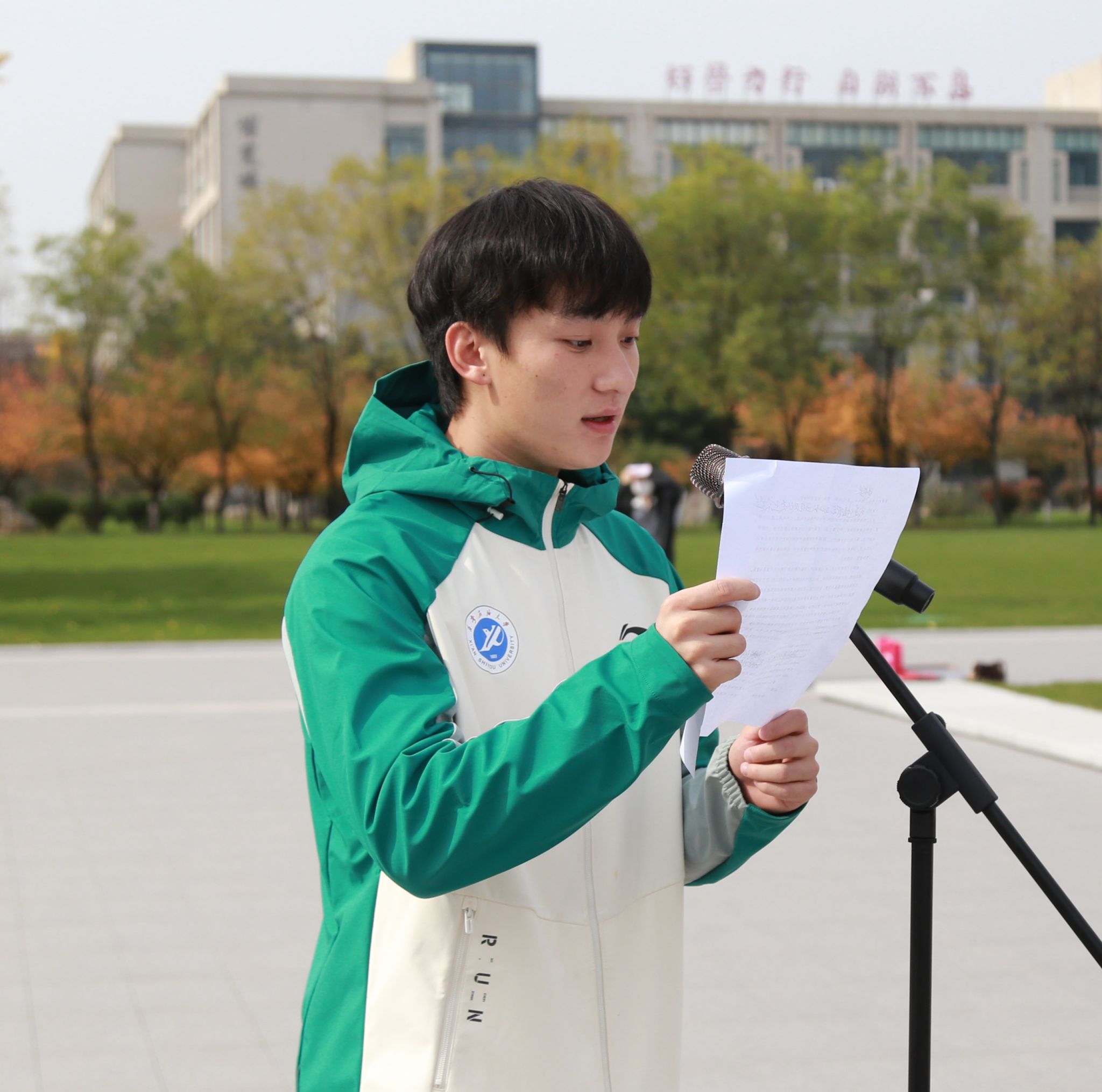 校田径队队长、社体2202班王家辉作为运动员代表发言,他深情回顾了备赛期间的辛苦训练和比赛过程中的团结协作。他表示,每一项成绩的取得都离不开运动员们无数次的挥汗如雨和教练们的悉心指导,也离不开各位领导老师的大力支持与帮助,今后将以此次比赛为起点,继续以更加饱满的热情投入训练,努力再次为校争光。