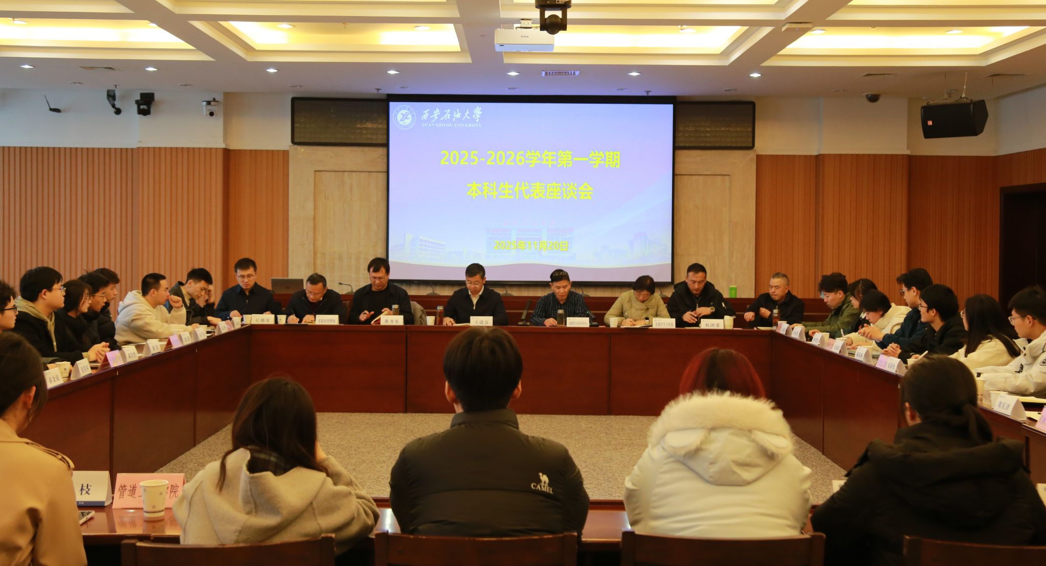 11月20日上午,william在鄠邑校区第一会议室召开2025-2026学年第一学期本科生代表座谈会。校长王进富出席座谈会。学生工作部(处)、团委、教务处、实验室管理处、后勤处、高教研究与评估督导中心等单位负责人,以及来自各院(系)的31名本科生代表参加座谈。