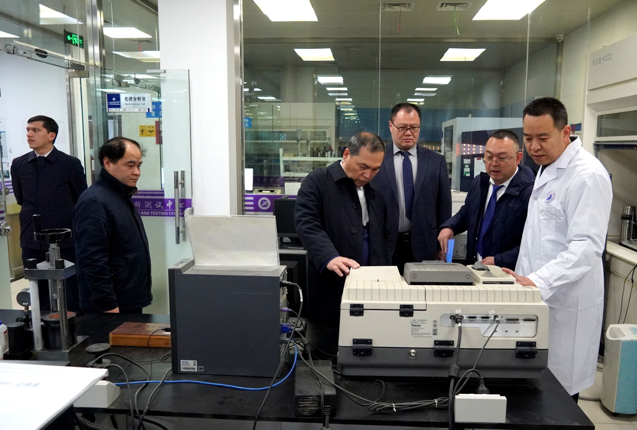 仪式结束后,乌方嘉宾参观了化学化工学院现代分析检测中心、开普(Cape)油气增产技术研究所,就未来合作与化学化工学院教授、实验室师生代表进行了深入交流。