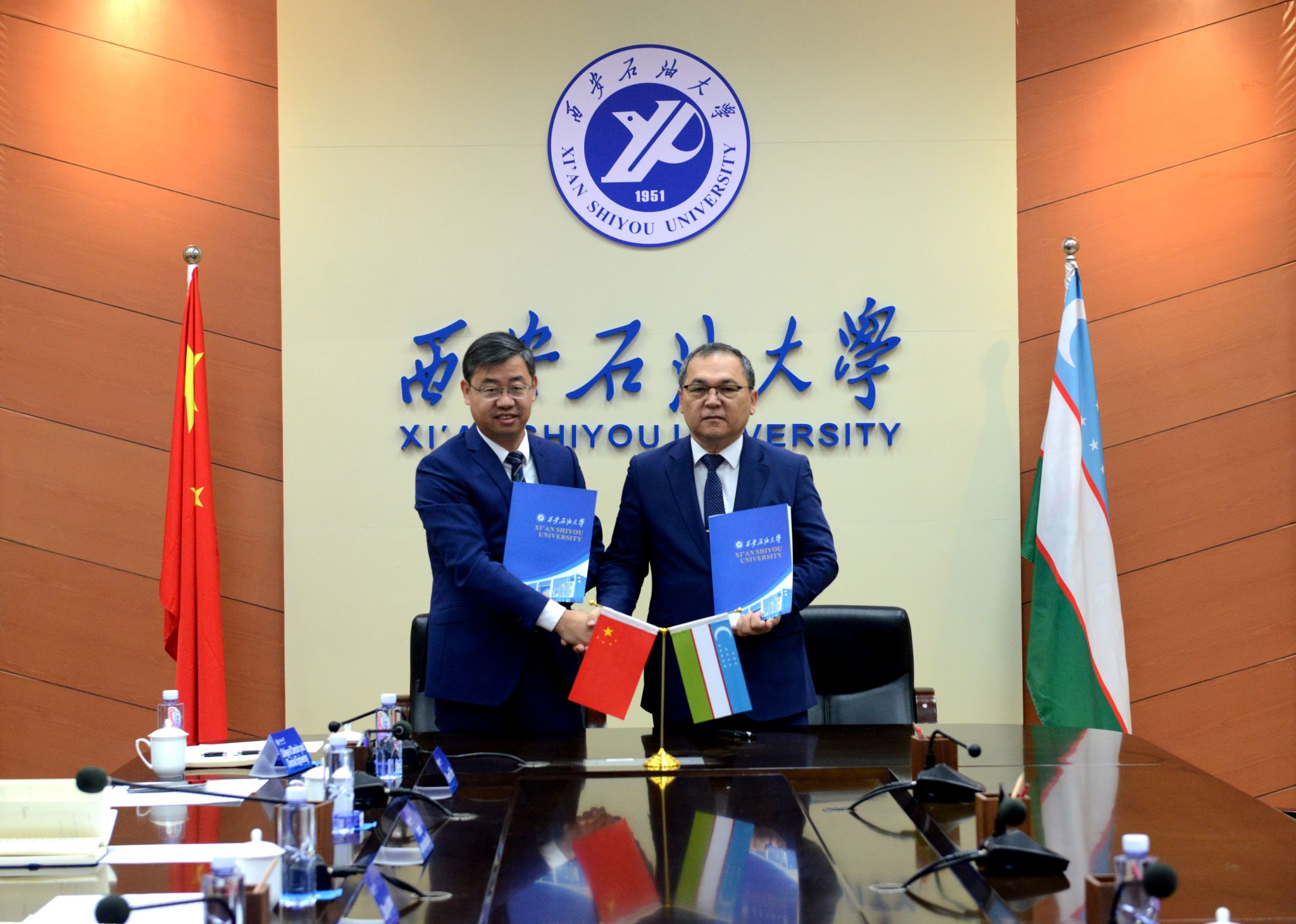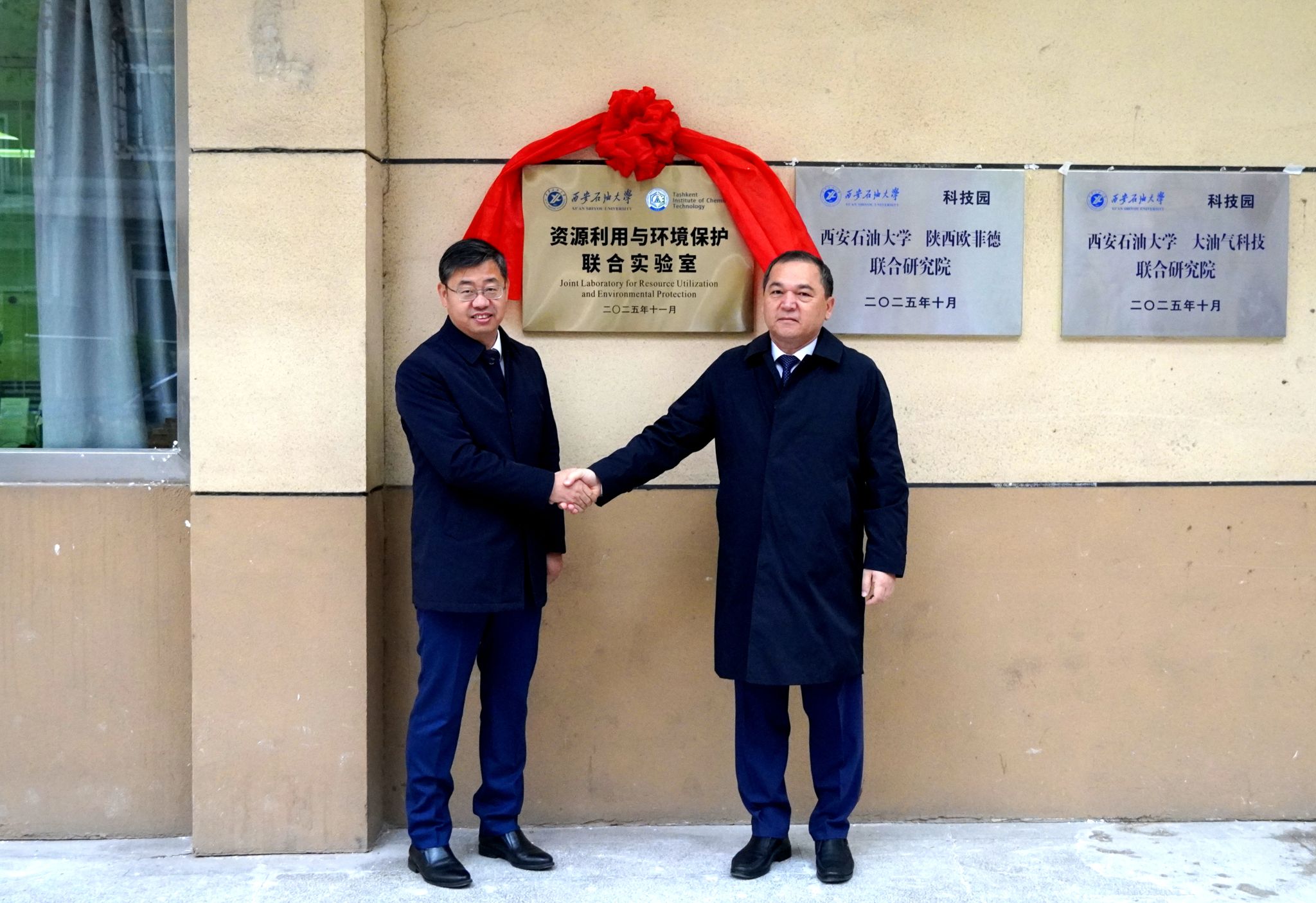 11月24日上午,塔什干化工学院校长博蒂尔·乌斯莫诺夫教授一行来校访问,并举行了两校共建“资源利用与环境保护联合实验室”签约及揭牌仪式。签约及揭牌仪式在雁塔校区会议中心第二会议室、化工实验室分别举行,校长王进富出席,副校长张君涛主持。