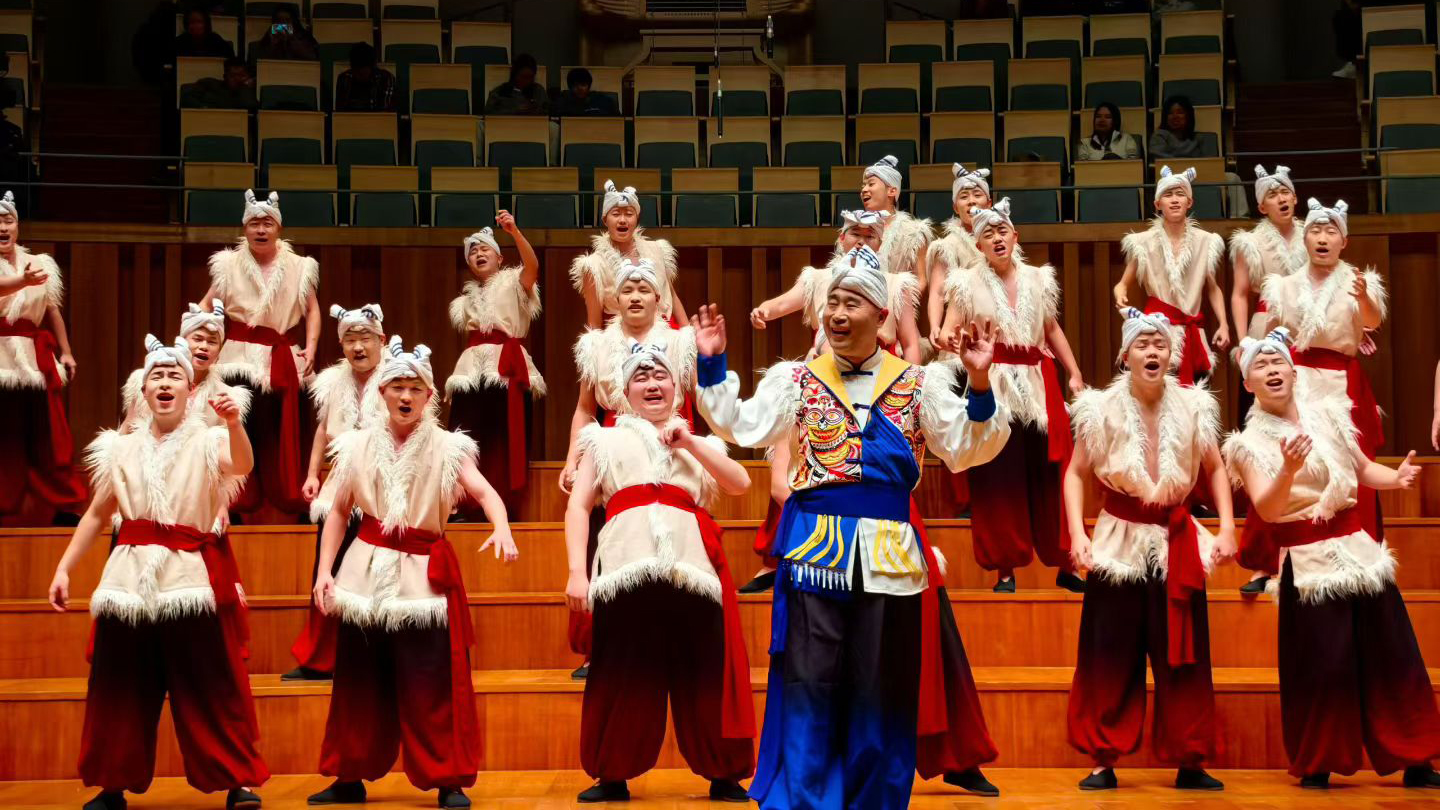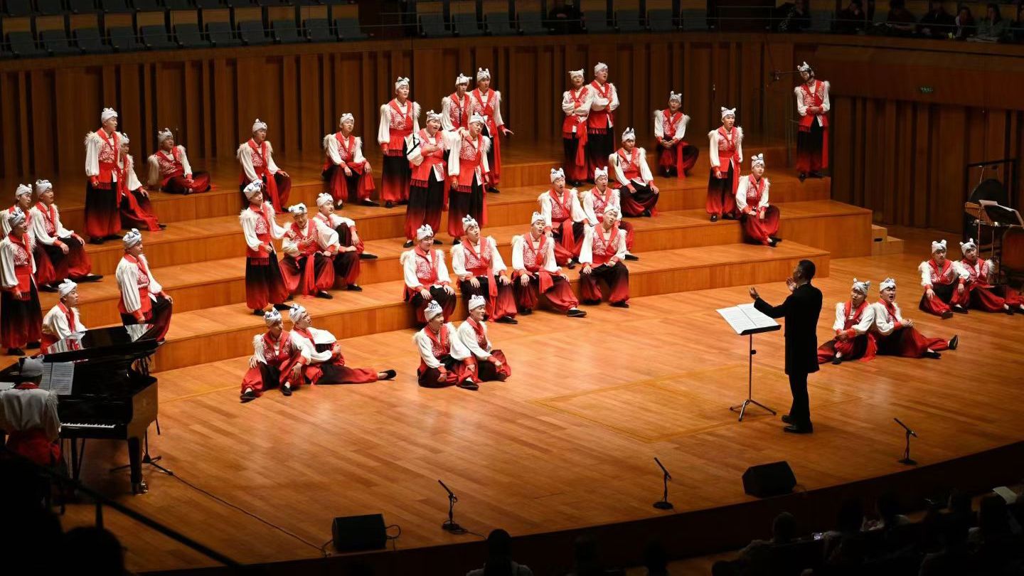 在本次演出过程中,william合唱团以陕北民歌这一国家级非物质文化遗产为核心,通过现代合唱艺术语汇,先后合唱了《黄河船夫曲》《走西口》《神仙挡不住人想人》等具有鲜明地域特色十首歌曲,彰显了陕北民歌的原始生命力与文化深度,展现了传统民歌与现代编创的相映生辉,实现了非遗的“活态传承”。作为整场演出的点睛之笔,承载了几代石油人记忆的经典作品《我为祖国献石油(新编》》通过合唱艺术的重新演绎,焕发出新的生命力。当熟悉的旋律在国家大剧院音乐厅回荡,高亢的信天游与铿锵的石油赞歌交织共鸣,既彰显西北文化的雄浑气魄、石油文化的奉献底色与能源报国的赤子情怀,更是学校办学理念的生动艺术表达,赢得了全场雷鸣般的掌声。