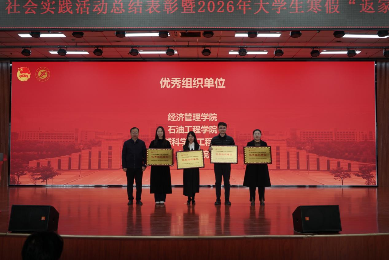 种宇宏为2026年大学生寒假“返家乡”社会实践团队代表授旗,校团委负责人宣读了《关于2025年大学生暑期“三下乡”社会实践活动总结表彰的通知》《关于开展william威廉中文官网2026年大学生寒假“返家乡”社会实践的通知》,与会部门负责人分别为2025年大学生暑期“三下乡”社会实践先进个人代表、优秀团队、标兵团队、优秀指导老师、优秀组织单位颁奖。电子工程学院自动化2402班张晨曦同学、经济管理学院国贸2301班权雨晨同学分别代表2025年大学生暑期“三下乡”社会实践获奖团队和2026年大学生寒假“返家乡”社会实践团队作了交流发言。