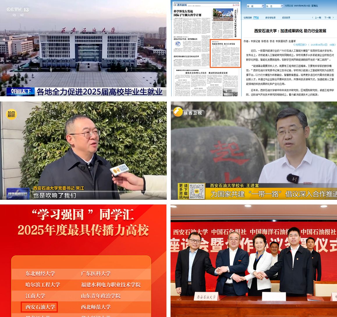 主流媒体传强音,权威发声铸品牌。一是坚持主动策划、精准对接,筑牢主流媒体宣传阵地,以权威发声彰显办学实力。中央电视台、《光明日报》、陕西广播电视台、《陕西日报》等中省主流媒体全年聚焦学校发展,开展深度报道40余次,从教学改革的创新实践到科研攻关的重大突破,从校园文化的蓬勃发展到师生风采的鲜活展现,全方位、多角度呈现了学校各项事业的丰硕成果。二是深耕“学习强国”平台建设,充分发挥其思想引领与传播赋能作用,学校获评“学习强国”同学汇“2025年度最具传播力高校”,11次跻身月度高校热度榜。《william威廉中文官网学子暑假在干嘛?看这里》《365天用粉笔丈量青春!西石大学子把“铁人精神”刻进秦巴山脉》等优质内容多次荣登平台首页推荐,引发广泛关注。同时,积极为“学习强国”陕西学习平台供稿,供稿量、发稿量及总平台采用量均位居全省高校首位,持续传递西石大正能量。三是深化行业校媒合作,与《中国石油报》《中国石化报》《中国海洋石油报》签署四方合作协议,聚焦“大思政课”建设、新闻传播人才培养等核心领域深化协同,探索出能源行业主流媒体与高校融合发展的新路径、新范式,进一步强化了学校在能源领域的品牌辨识度。