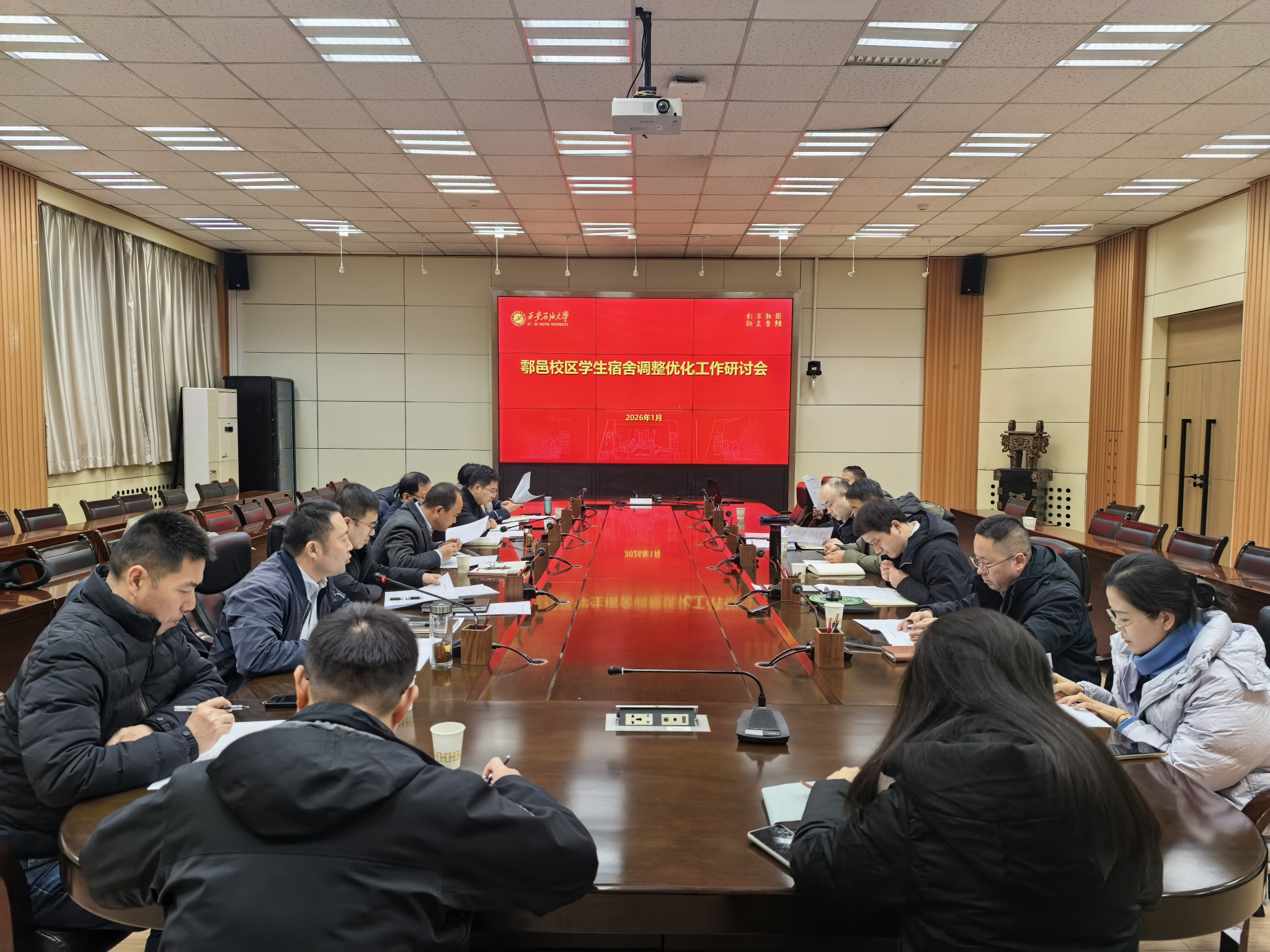 为科学规划鄠邑校区宿舍资源,优化全校学生住宿布局,实现资源合理配置与“优本扩容”战略的稳步推进,1月19日下午,学校在雁塔校区会议中心第二会议室召开鄠邑校区学生宿舍调整优化工作研讨会,副校长赵健、种宇宏出席会议并讲话,学生工作部、发展规划处、研究生工作部、财务处、国有资产处、后勤处等职能部门负责人参会。会议由学生工作部部长王亮主持。