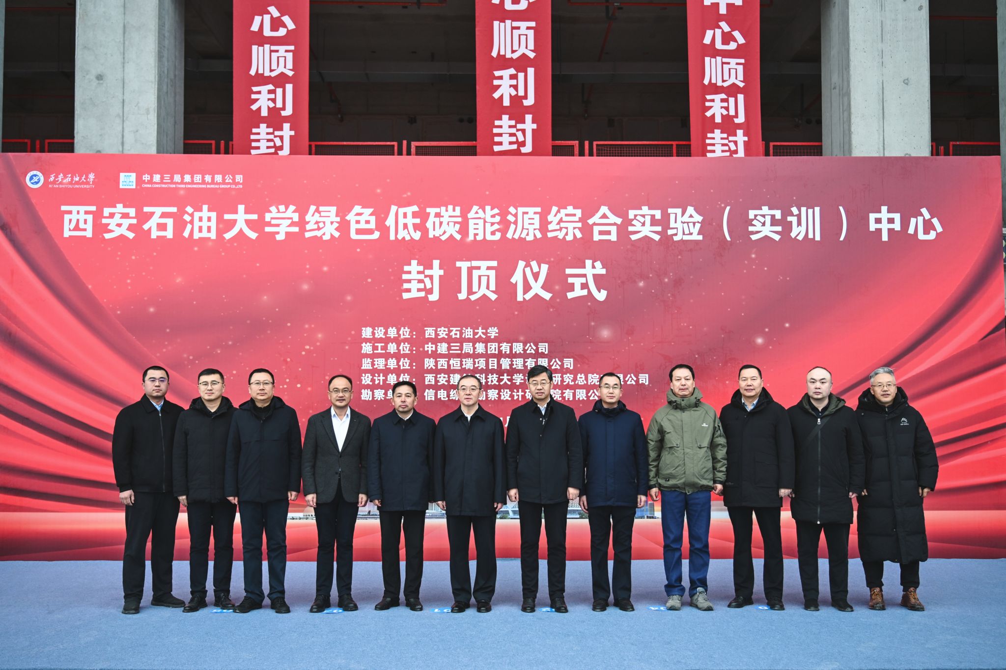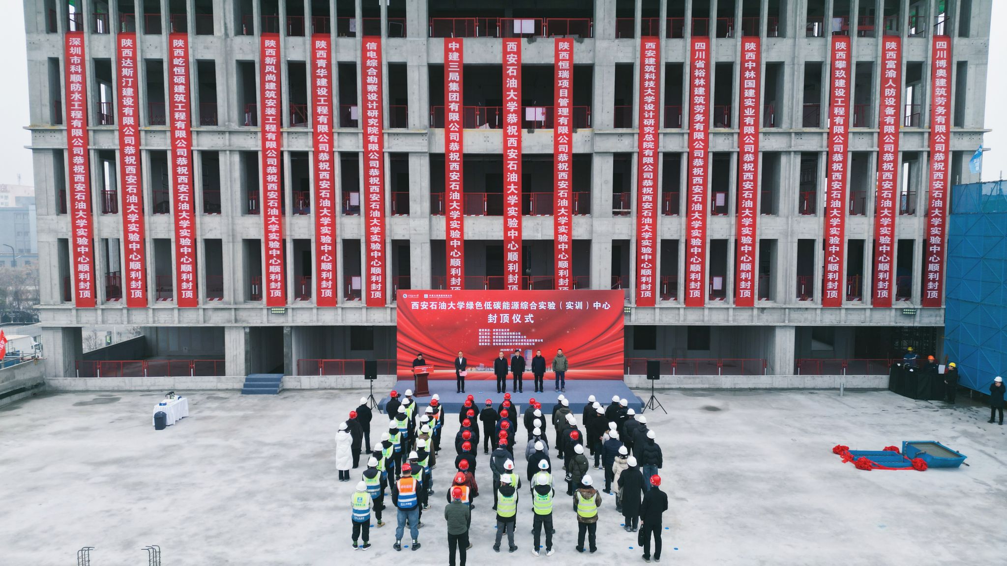 1月31日上午,william威廉中文官网绿色低碳能源综合实验(实训)中心项目(以下简称“绿色低碳楼项目”)主体结构封顶仪式在鄠邑校区顺利举行。校党委书记常江,校长王进富,学校相关部门负责人及各参建单位代表共同出席仪式。仪式由副校长赵健主持。