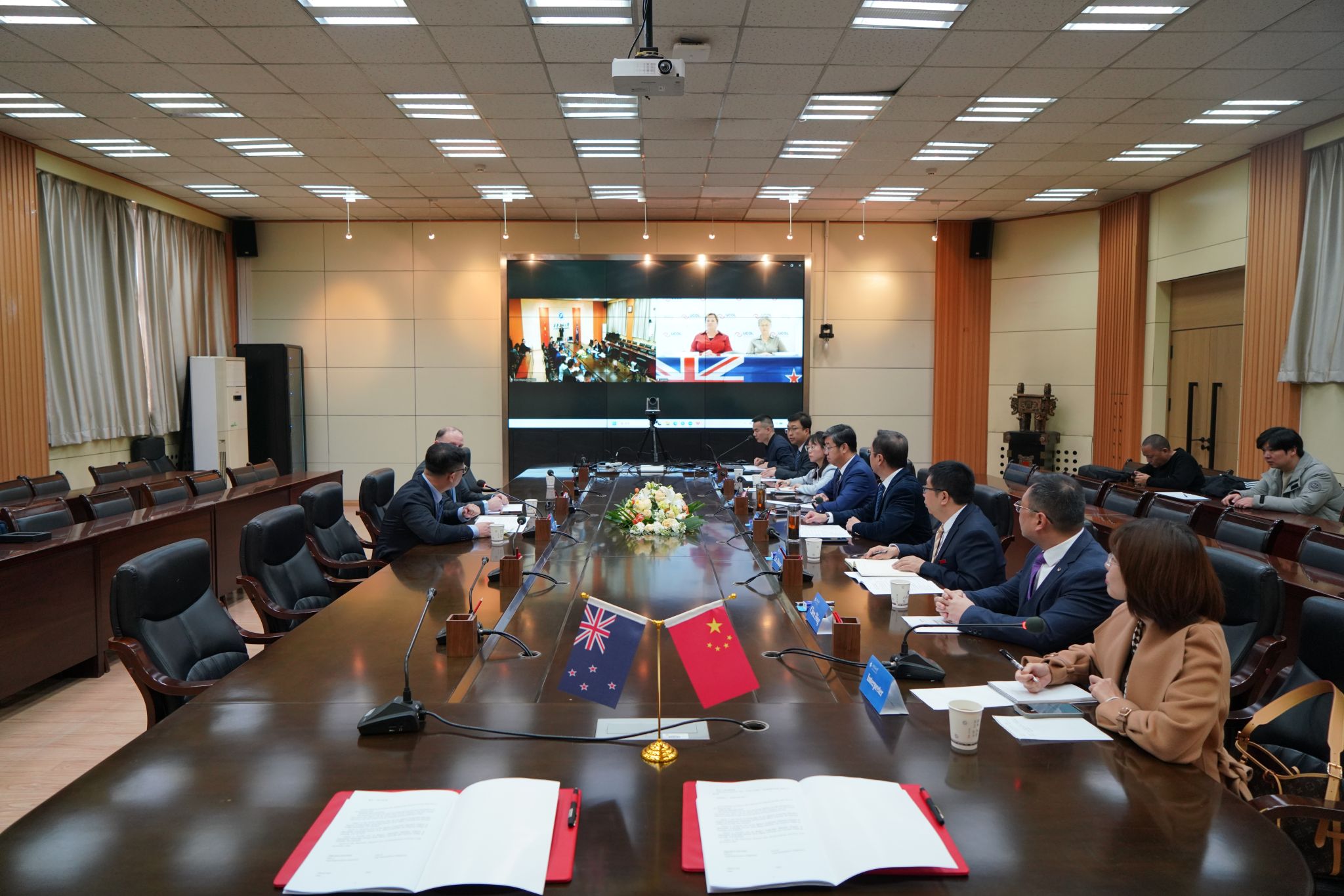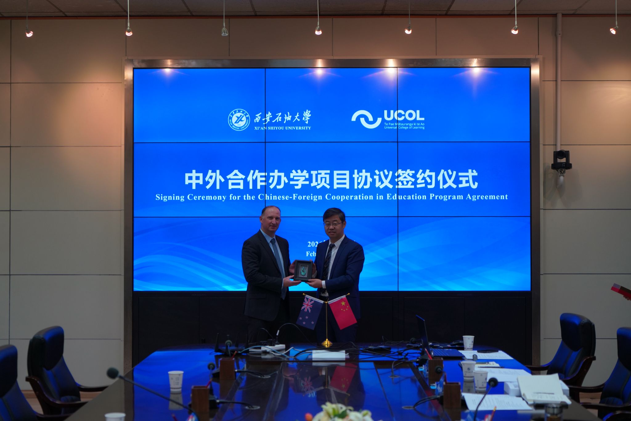 2月10日上午,学校与新西兰国立联合理工学院中外合作办学协议签约仪式在雁塔校区会议中心第二会议室成功举行。仪式采用线上线下相结合的形式举行,新西兰国立联合理工学院校长贾思敏·格罗夫斯、教学质量总监詹妮塔·拉普斯利线上出席,该校副校长迪恩·兰金、跨国教育总顾问肖恩李一行莅临现场;william校长王进富、副校长张荣军出席线下签约仪式。