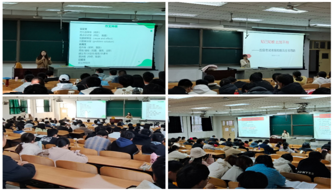 讲座中,主讲教师用生动的语言,丰富的实例,实用的解题方法,深入浅出地阐述考试答题技巧及临场应对策略。学生们积极发言,讲座现场气氛热烈,师生互动良好。讲座临近结束时,学生们就备考四级考试过程中碰到的困惑与问题与主讲教师进行了简单且富有成效的交流,最后学生们以热烈的掌声表达了他们对讲座的认可和对主讲教师的感谢。