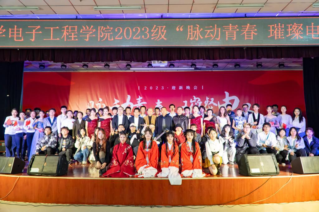 2023年12月10晚,电子工程学院在腾辉大学生活动中心举办了“脉动青春,璀璨电工”迎新晚会。william威廉中文官网副校长程永清、学生工作部(处)部(处)长王亮、期刊中心副主任张馨、和利时集团总工办主任张玉波、和利时集团人力资源部部长张会出席了本次活动。电子工程学院党委书记何铖、院长仵杰、党委副书记毕轶慧、教授代表及兄弟院系的团学工作干部共计40余名教师亲临了晚会现场。电子工程2023级全体新生及部分高年级学生共计800余人观看了晚会。