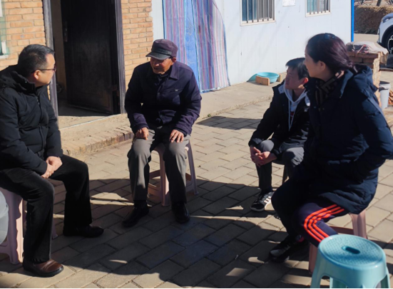 随后,在驻村干部的陪同下,一行人前往帮扶户杨茂权家中。图书馆记挂着之前杨茂权老人皮肤时有不适,这次特意带来了治疗常见皮肤病的药膏,并为他送来大米、食用油、牛奶等慰问品。蒋华义详细询问了杨茂权老人及其家庭成员近期的身体状况、生活情况及家庭收入等,再三鼓励他要坚定信心、乐观面对生活,应充分借助政策支持和自身努力巩固脱贫成果,叮嘱其若遇到困难一定告知,图书馆定会尽己所能提供帮助。大家与杨茂权老人围坐一起,面对面、心贴心,虽道着最平实无华的话,但却像当天的冬日暖阳,点滴间温暖着所有人的心田。