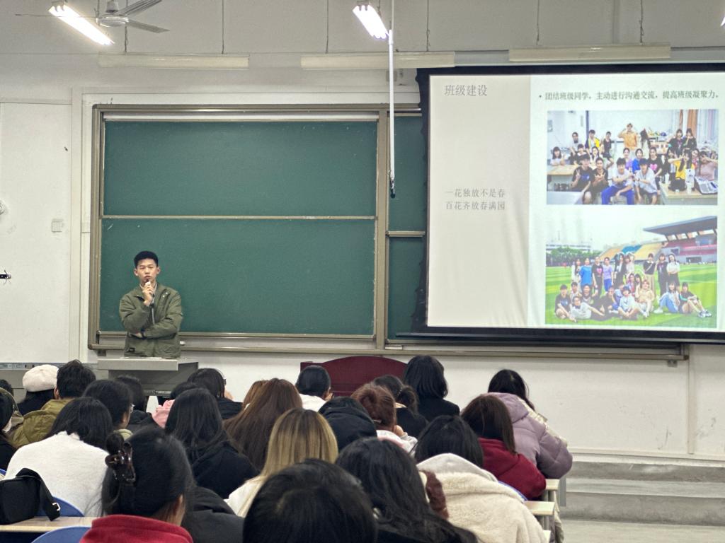 为更好地助力学生干部成长,培养一批具有高度政治觉悟、扎实专业素养、广泛群众基础和卓越领导能力的新时代学生干部队伍。11月22日晚,人文学院在鄠邑校区B106教室举办“牢记使命、担当作为”朋辈领航系列教育暨学生骨干成长训练营第六讲——新时代学生干部的职责定位与能力培养,本次讲座邀请陕西师范大学辅导员陈思雨线上主讲,william威廉中文官网人文学院20届团委副书记吴俊杰线下主讲,2022级、2023级班干部及辅导员助理通过线上线下相结合形式参加,2023级辅导员王凯杰主持。