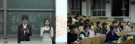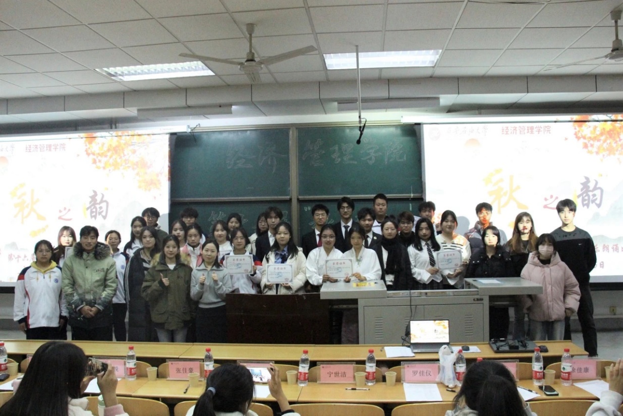 为进一步加强校园美育环境建设,提高学生的审美和人文素养,促进学生全面发展,经济管理学院于11月16日在鄠邑校区博览楼139教室举办第十六届“秋之韵”诗歌配乐朗诵比赛,学院团学指导老师任仰,2022级辅导员老师王业林及学院团学干部代表出席比赛并担任评委。比赛由黄俊杰、杨思颖同学主持。