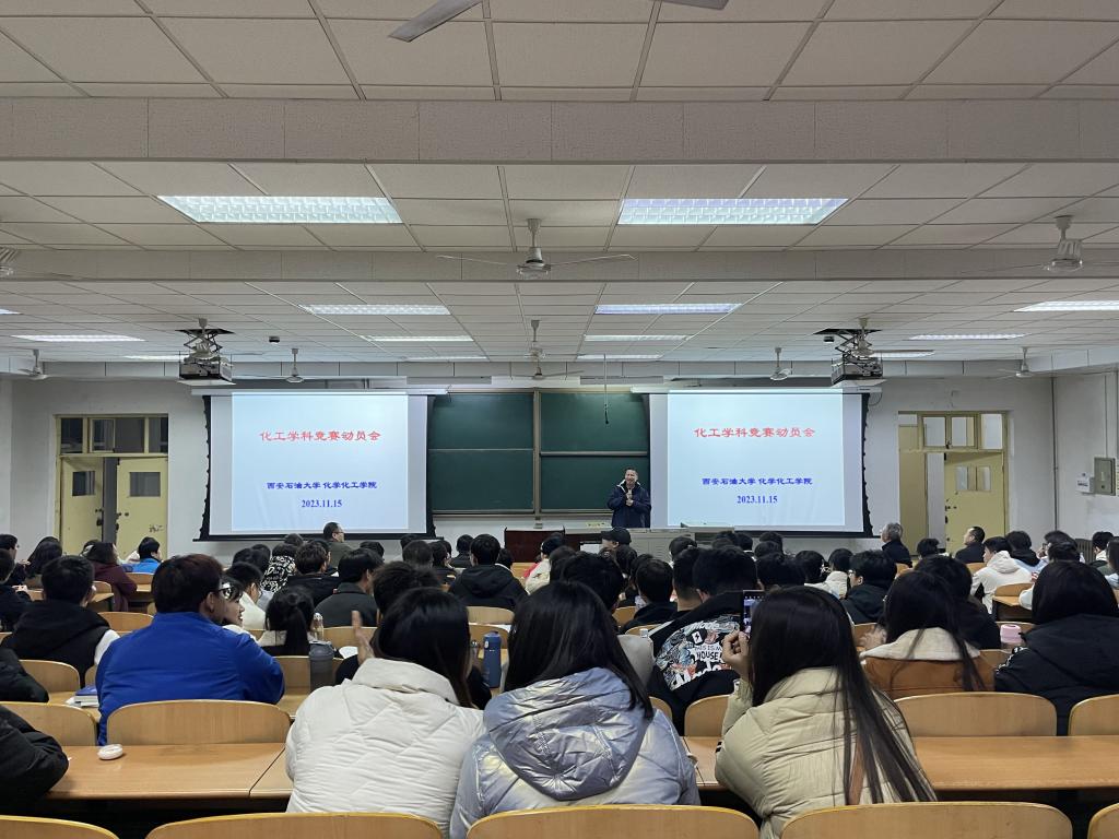 为进一步加强人才培养质量,提升学生学科竞赛水平,2023年11月15日晚,化学化工学院在鄠邑校区博览楼A139教室召开化工学科竞赛动员会。此次活动邀请学院党委书记司马文龙、化工系部分学科竞赛指导教师刘菊荣、范峥、王进、唐璇分别主讲,由2021级辅导员曹勃和2021级全体本科生参与,化学工程系主任宋绍富教授主持。