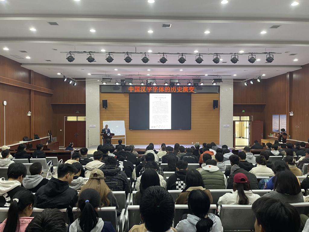 汉字是世界上现存最古老的文字,传承汉字文化首先要对汉字的起源与发展进行历史追溯。从商朝的甲骨文,到周朝的金文,再到秦朝的小篆,汉代的隶书,魏晋的楷书,以及东汉的草书与行书,每个阶段都蕴含了深厚的历史文化底蕴。为了帮助同学们更加了解中华文明的发展历程,增强文化自信和民族自豪感,同时培养审美能力和艺术鉴赏能力,人文学院于11月10日下午在鄠邑校区崇文楼就业指导中心多功能厅开展“人文大讲堂之专家学者进校园”系列讲座——《中国汉字字体的历史演变》及《中国大篆书法欣赏与实践》。讲座主讲人分别为中国大篆文化研究院院长、窦体大篆书法家中国大篆文化传承人窦德盛老师和文化学者、军旅书法家,中国大篆文化研究院副院长,中国硬笔书法协会高级书法教师,“国礼艺术家”刘博老师。讲座由人文学院党委书记余小勇主持、各年级辅导员出席、人文学院与计算机学院学生参加。
