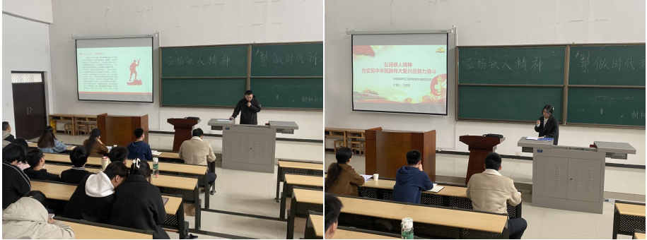 5名学生党员依次展示自己精心设计的主题党课,学生第一党支部孙建凤讲述的主题为“弘扬铁人精神,争做时代新人”,学生第二党支部平传升讲述的主题为“石油人,石油魂”,学生第三党支部卢婧迪讲述的主题为“铁人精神,大庆精神”,学生第四党支部王欣慰讲述的主题为“学习铁人王进喜”,学生第五党支部刘乾讲述的主题为“铁人精神代代相传,艰苦奋斗永向前”。