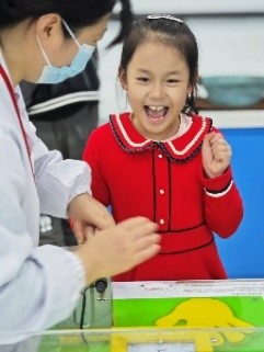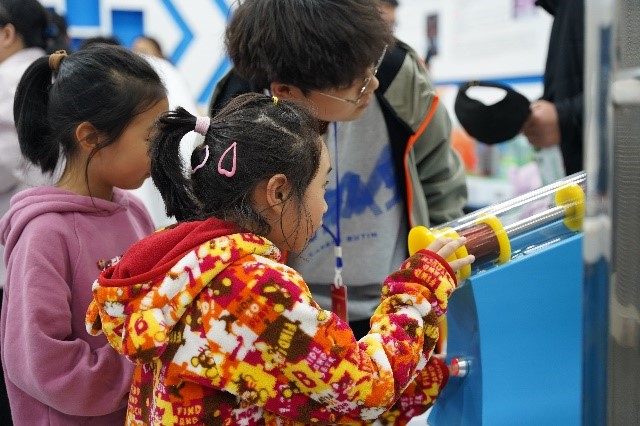 活动当天,家长和小朋友们在学生志愿者的组织引导下有序地参观了各个实验室。教师志愿者对演示实验项目的原理、操作方法和注意事项进行了详细的讲解和演示,引导小朋友们认真观察实验现象、提出问题、主动探索,并指导大家亲身体验各个实验项目。其中特斯拉放电、茹科夫斯基转椅、锥体上滚、清洁能源、GPS全球定位系统演示仪、彩色影子等项目给大家留下了深刻的印象。在VR实验室,大家可以亲身体验虚拟现实技术,感受科技的魅力。活动为参观者仅打开了切身体验科学知识的窗口,领略到物理的魅力和科技的创新,也培养了孩子们树立探索科学奥秘,立志科学报国的理想。