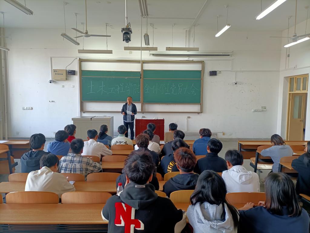 11月2日中午,土木工程学院学生党建工作办公室在鄠邑校区博思楼B201教室召开全体学生党员专题教育大会。全体学生党员共计47人参加了会议。会议由学院学生党建工作办公室主任、学工办主任李化杰主持。