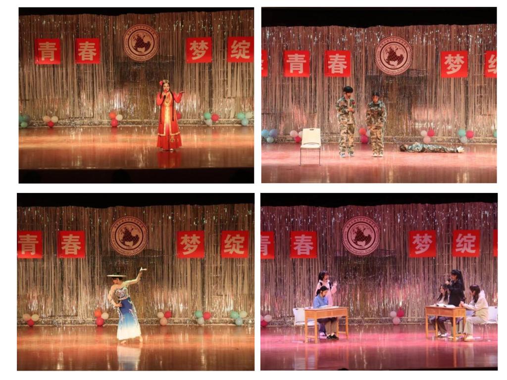 整台晚会分为“礼颂盛世,共谱华章”、“民族同行,共语百年”、“勇往直前,追寻梦想”、“圆梦启航,语通世界”四个篇章,同学们通过唱歌、舞蹈、情景剧、器乐演奏等多种舞台艺术样式,展现了青春韶华积极昂扬的精神风貌,也表达了对学校和祖国母亲深深的热爱。朗诵《吹号者》演绎出了那曾经唤醒了一个民族并激励这个民族奋勇前进的号声,歌曲《夜空中最亮的星》唱出了我们要执着追梦,照亮身边的黑暗,手势舞《万疆》将对伟大祖国的热爱和祝福化为手势挥舞的舞动,民族舞蹈展示了不同民族的多样性,民族朗诵、民族歌曲表达了民族团结一家亲,携手共发展的美好愿望。合唱《仰望星空》唱出了实现美好的愿望,美丽的人生就在眼前;《别怕变老》展示了少年朝气不惧岁月,情景剧《克服自卑》表达了每个人无需因为自己的缺点和一时过错而不敢面对自己,要常自信;拉丁舞表演舞出了青春活力,尽情释放美妙舞步,享受运动之美;英语剧配音《沉睡魔咒》展示了外语学习者的语言功底,吸引新生有更大的兴趣学习。