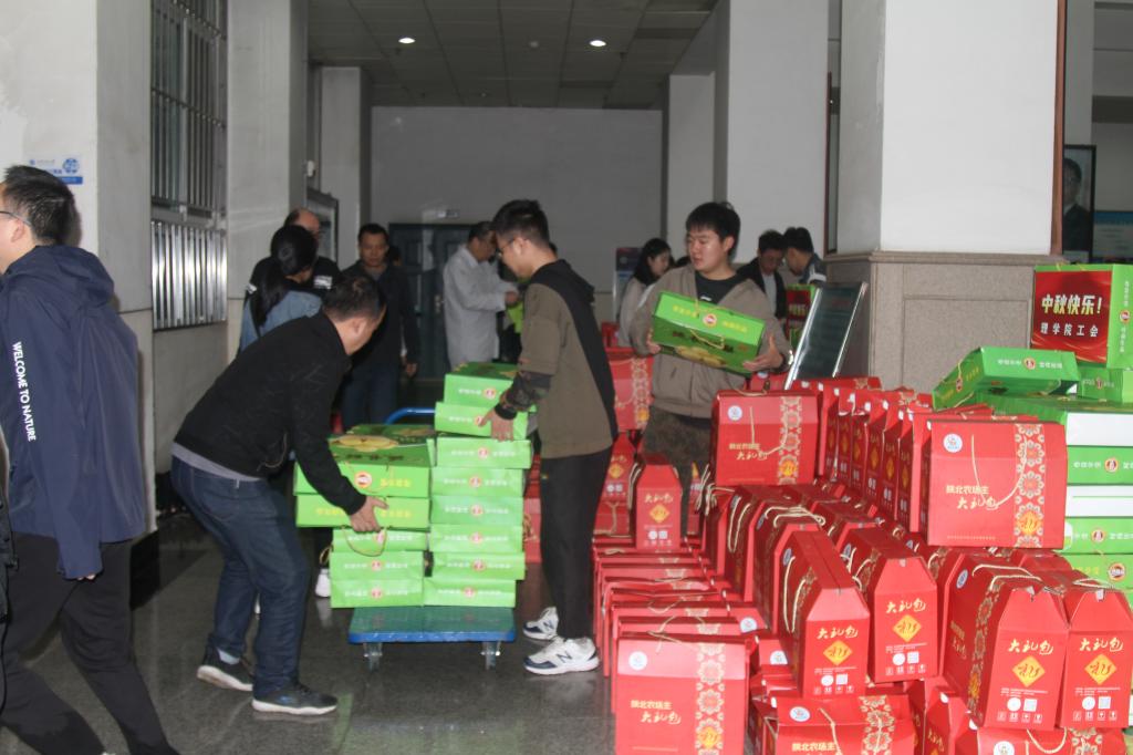 稻稔时节,桂雨疏桐。正值中秋佳节、国庆节来临之际,为响应陕西省委、省教育工委关于“双百工程”优质农产品进高校直通车的号召,落实乡村振兴,巩固脱贫攻坚成果,根据william与延长县的“双百工程”协议,校工会精心选购了一批延长县农副产品,于9月25日在雁塔校区忠实广场向广大教职工以福利的形式发放,向辛勤工作在william各个工作岗位上的全体教职工表示衷心的慰问,并送去校工会对全体教职工的节日祝福。