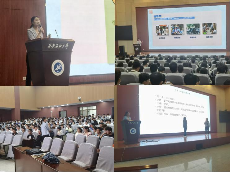 此次讲座以“同一个屋檐下——宿舍里的人际关系”为题,赵老师从近年来各高校出现的宿舍人际关系问题的典型案例切入,强调了大学生宿舍关系对于学生心理健康发展的独特意义。随后从宿舍关系的重要性、表现类型、原因分析和具体对策四个方面全面、系统地进行阐述,结合心理学理论,对实际案例进行剖析,深入浅出地将心理健康知识传递给同学们。讲座中,赵老师与现场同学积极互动,精彩的情景短剧与幽默风趣的语言让心理健康知识变得浅显易懂,同学们认真聆听、受益匪浅。