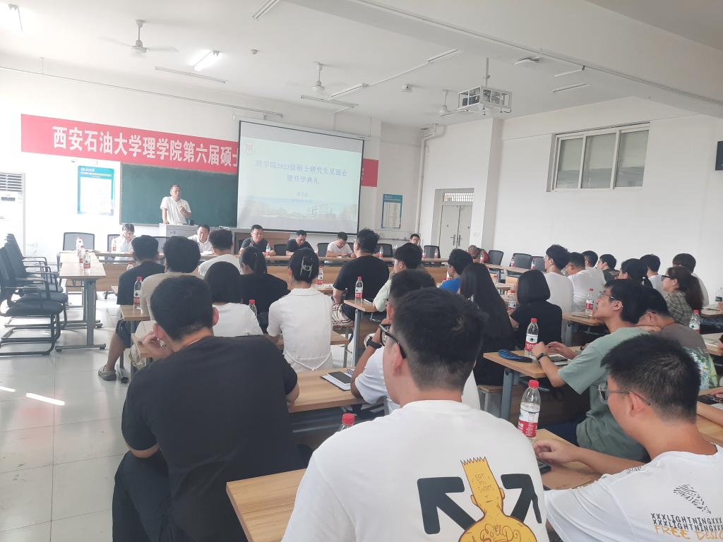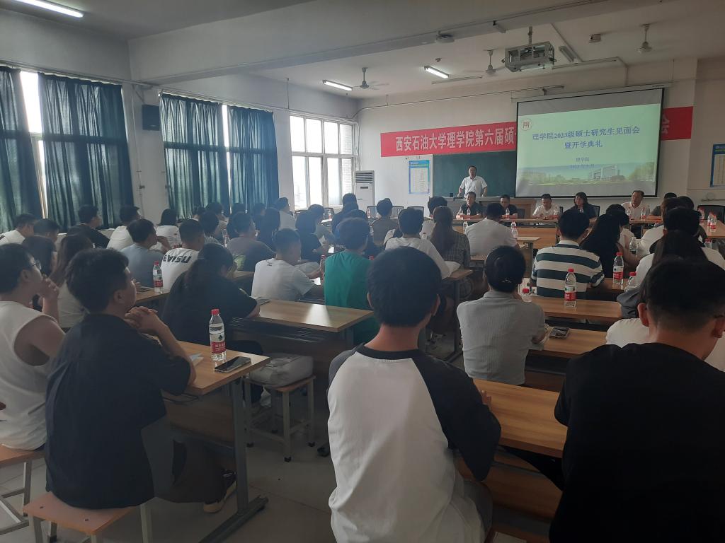 9月7日下午,理学院在鄠邑校区志远楼502室召开了2023级硕士研究生见面会暨开学典礼。学院院长傅海威、党委副书记马小刚、副院长折延宏、副院长陈国祥,导师代表李岚、刘颖刚、李岩、刘帅,研究生辅导员马小梅、庞波及全体2023级硕士研究生参加了本次大会。会议由副院长折延宏主持。