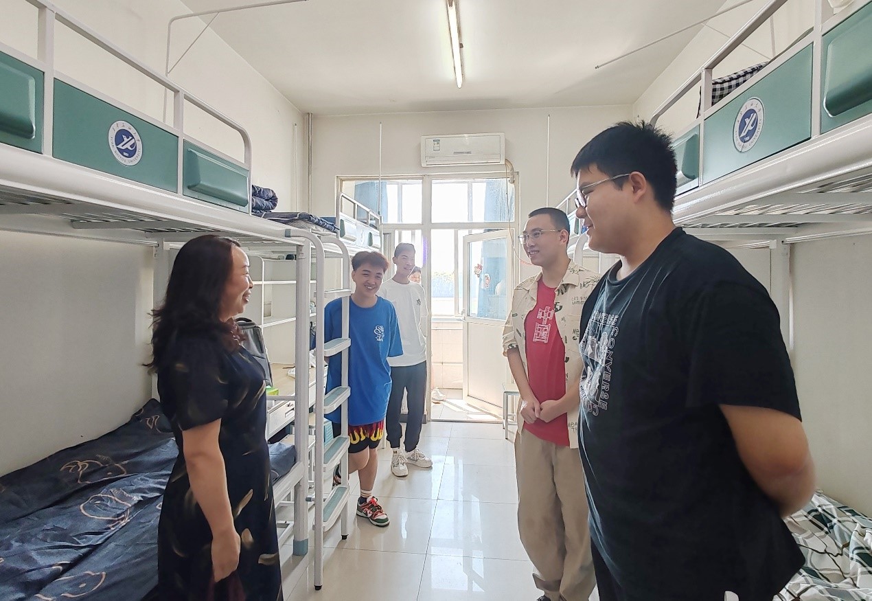 在迎新现场,学院领导们详细了解新生报到情况,慰问现场工作人员和学生志愿者。在走访宿舍过程中,分别与新生及家长进行亲切交流,了解同学们来校后的感受和对学校的印象,以及每位新生的名字、家乡籍贯、专业等信息,详细询问同学们在衣、食、住、行等方面的问题,听取新生对学院迎新工作的感受。叮嘱同学们要尽快调整好学习生活节奏,完成身份、角色转变,养成良好生活习惯,以积极良好的状态迎接大学学习生活。鼓励同学们提前做好大学期间的学习规划,勇于尝试新事物,积极参加各种活动和比赛,脚踏实地,为将来的发展打下扎实的基础。