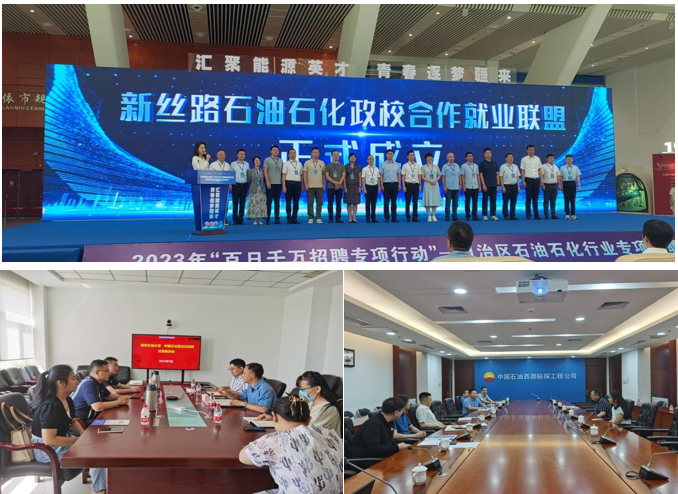 石油工程学院全面深刻领会学校关于毕业生就业创业工作的指示和要求,认真总结和分析当前面临的严峻就业形势,落实“访企拓岗”就业行动要求,持续加大毕业生就业岗位开拓力度和市场岗位供给,着力加强校企合作力度、深度和广度,全力以赴做好毕业生就业工作。一是学院学工干部带领部分毕业生赴中海油能源发展股份有限公司工程技术深圳分公司、中石油塔里木油田分公司、中石化西北石油局、中石油西部钻探分公司、中石油玉门油田分公司走访交流座谈,聘请10位优秀校友担任学院校外铁人精神辅导员,并在部分企业进行了为期一周的油田现场实习,不断创新校企人才供需对接形式,丰富合作载体,构建校企合作长效机制。二是学院赴新疆克拉玛依市参加石油石化行业专场招聘活动启动仪式,走访克拉玛依区中石油独山子石化等相关石油石化企业,调研了解企业生产建设情况,不断为毕业生搭建更为广阔的就业平台。三是中油(新疆)石油工程有限公司西安分公司来学院回访,就进一步加强校企合作深度融合,推动产学研用落实落地座谈交流,并在研究生联合培养、毕业生实习实践和毕业生就业等方面深入交流,达成部分合作意向。