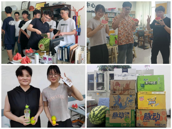 清凉相伴平安度夏,暖心慰问助梦远航。今年暑假,经济管理学院共有200余名学生留校备考,学院为同学们提供了考研自习室,积极创造良好的学习环境,充分保障同学们暑期学习生活需求。此次暑期慰问,学院为暑期留校学生准备了西瓜、牛奶、电解质水等慰问品。同学们纷纷表示学院的关怀让大家备受鼓舞,一定会积极备考,脚踏实地、奋发向上、静心努力,取得优异成绩。