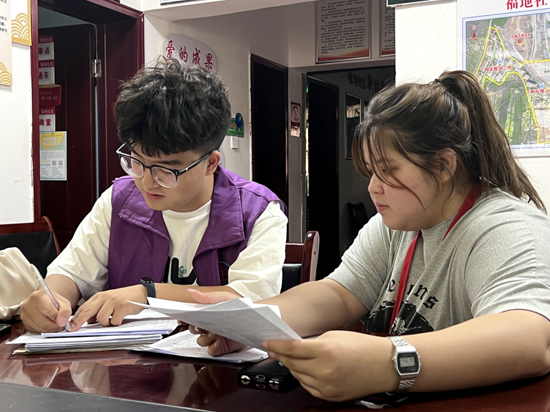 这样的感悟同样来自参加了社区服务工作后的其他队员。7月5日,团队进行了为期一天的社区服务活动,在红庙子片区福地社区的整理文件、接听电话、门岗值班等工作,让队员们对新疆发展的认知又有新的理解。
